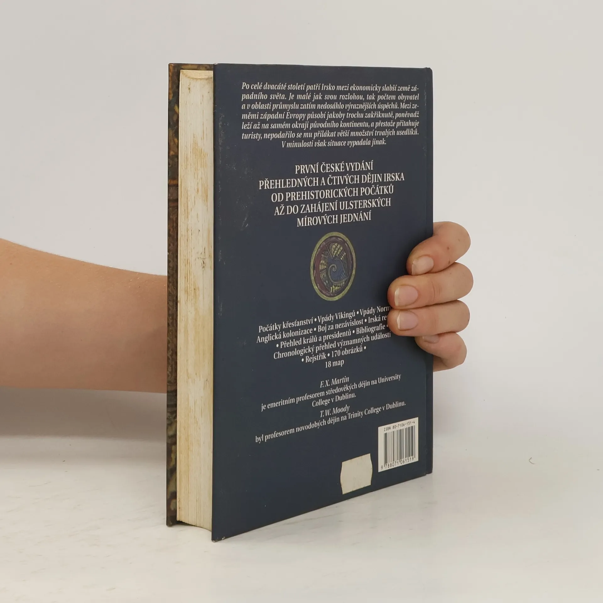 Po celé dvacáté století patří Irsko mezi ekonomicky slabší země západního světa. Je malé jak svou rozlohou, tak počtem obyvatel a v oblasti průmyslu zatím nedosáhlo výraznějších úspěchů. Mezi zeměmi západní Evropy působí jakoby trochu zakřiknutě, poněvadž leží až na samém okraji původního kontinentu, a přestože přitahuje turisty, nepodařilo se mu přilákat větší množství trvalých usedlíků.V minulosti však situace vypadala jinak. První české vydání přehledných a čtivých dějin Irska od prehistorických počátků až do zahájení Ulsterských mírových jednaní Počátky křesťanství • Vpády Vikingů • Vpády Normanů. Anglická kolonizace • Boj za nezávislost • Irská republika • Přehled králů a presidentů • Bibliografie • Chronologický přehled významných událostí • Rejstřík • 170 obrázků • 18 map V roce 2000 dotisk knihy.
