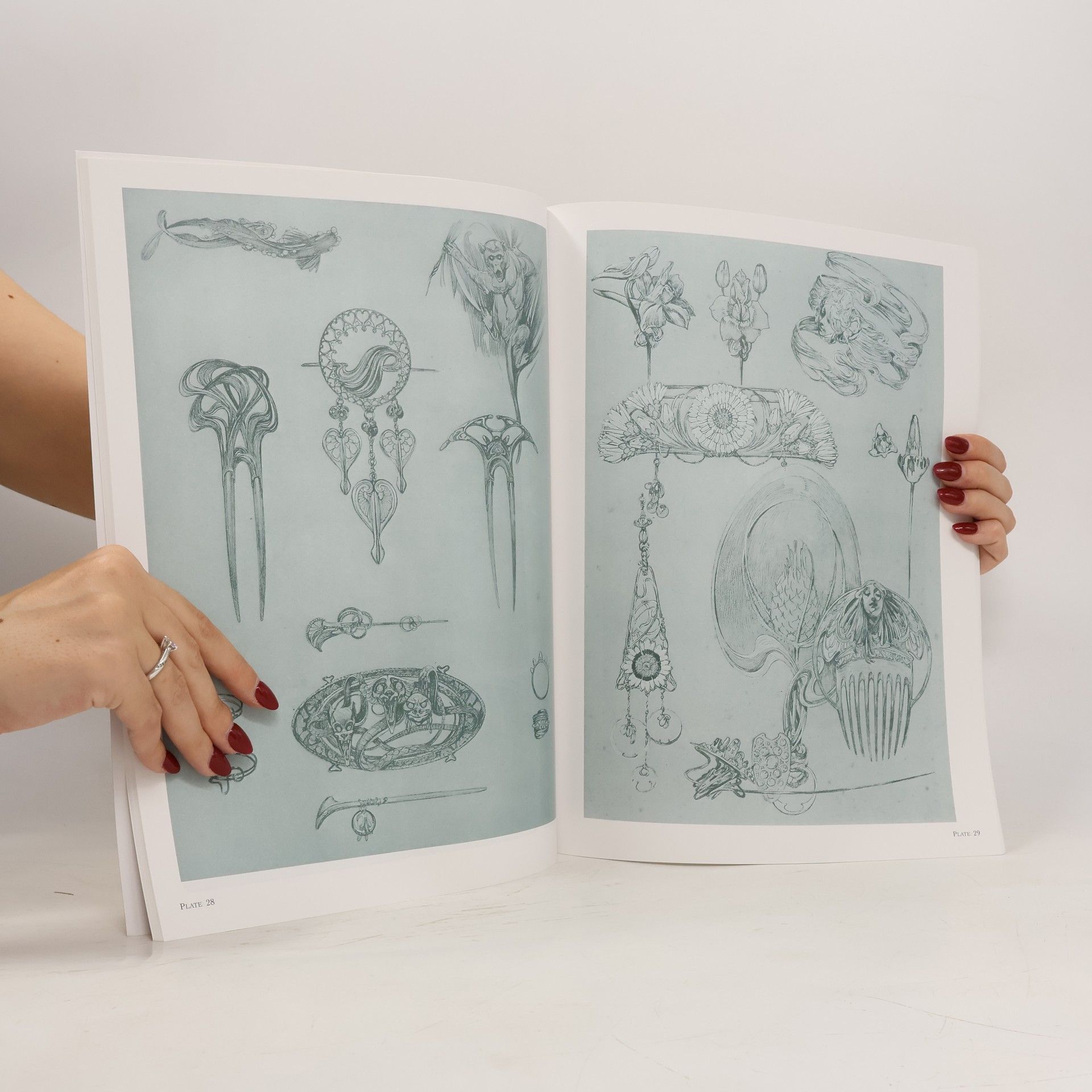 Rare design portfolio by high priest of Art Nouveau. Jewelry, wallpaper, stained glass, furniture; figure studies; plant and animal motifs, much more. This complete one-volume edition features all 72 stunning plates from Documents Décoratifs in original color.