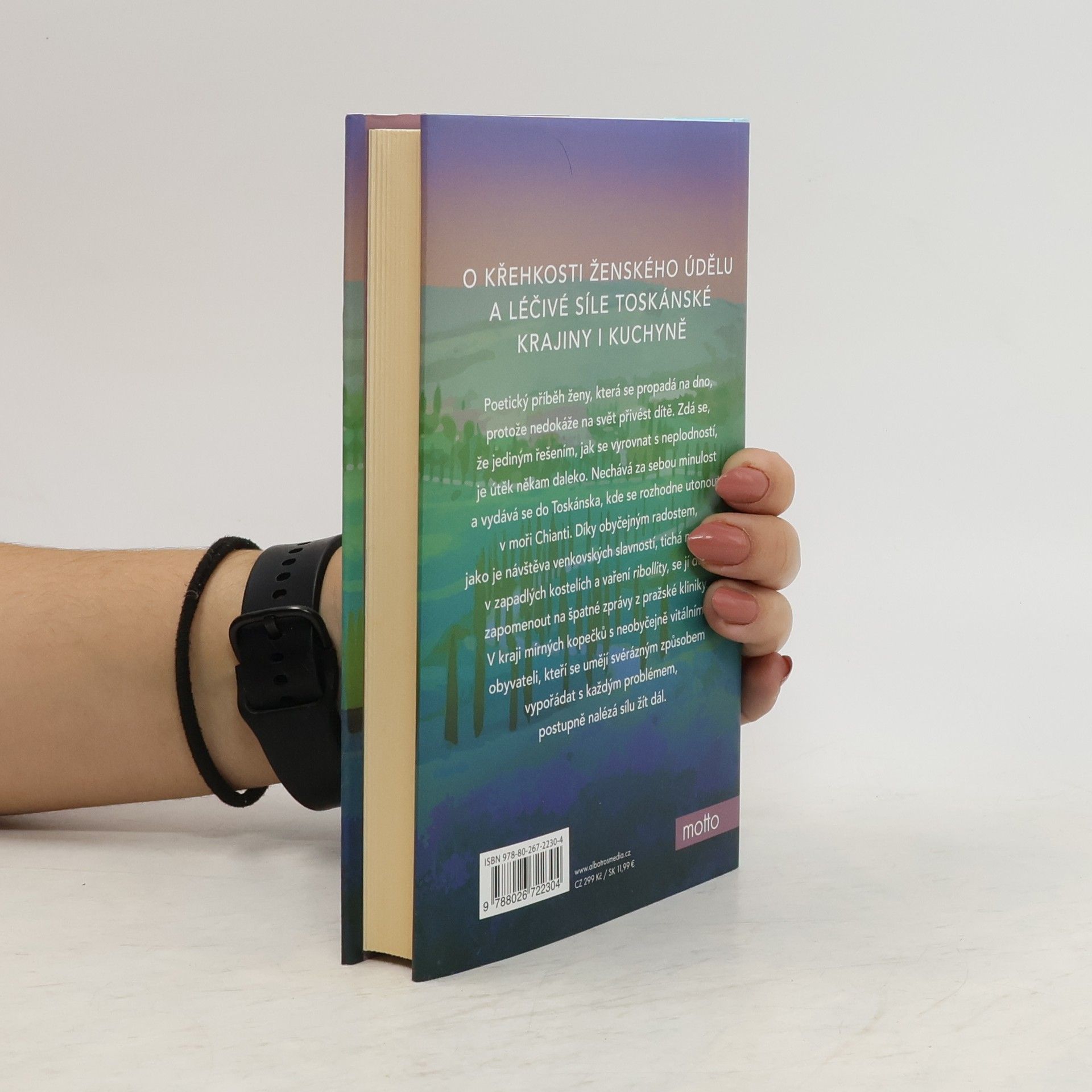 Poetický příběh ženy, která se propadá na dno, protože nedokáže na svět přivést dítě. Zdá se, že jediným řešením, jak se vyrovnat s neplodností, je útěk někam daleko. Nechává za sebou minulost a vydává se do Toskánska, kde se rozhodne utonout v moři Chianti. Díky obyčejným radostem, jako je návštěva venkovských slavností, tichá modlitba v zapadlých kostelích a vaření ribollity, se jí daří zapomenout na špatné zprávy z pražské kliniky. V kraji mírných kopečků s neobyčejně vitálními obyvateli, kteří se umějí svérázným způsobem vypořádat s každým problémem, postupně nalézá sílu žít dál.