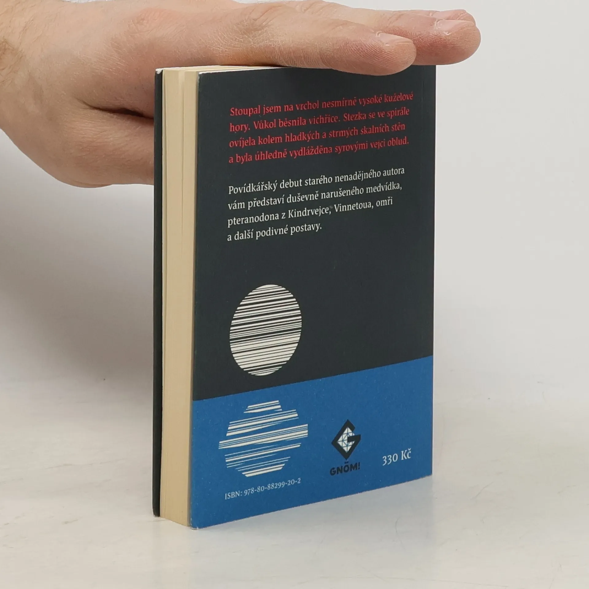 Povídkářský debut starého nenadějného autora vám představí duševně narušeného medvídka, pteranodona z Kindrvejce, Vinnetoua, omři a další podivné postavy. „Stoupal jsem na vrchol nesmírně vysoké kuželové hory. Vůkol běsnila vichřice. Stezka se ve spirále ovíjela kolem hladkých a strmých skalních stěn a byla úhledně vydlážděna syrovými vejci oblud.“