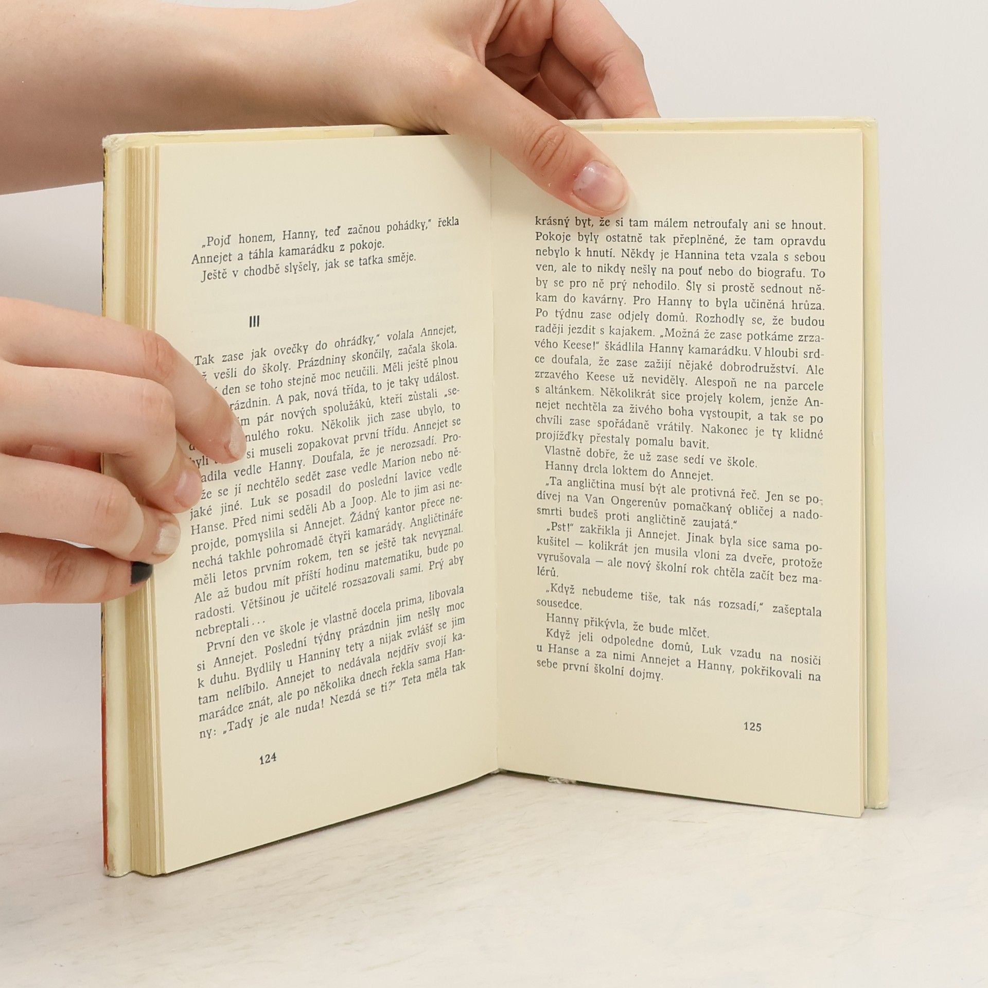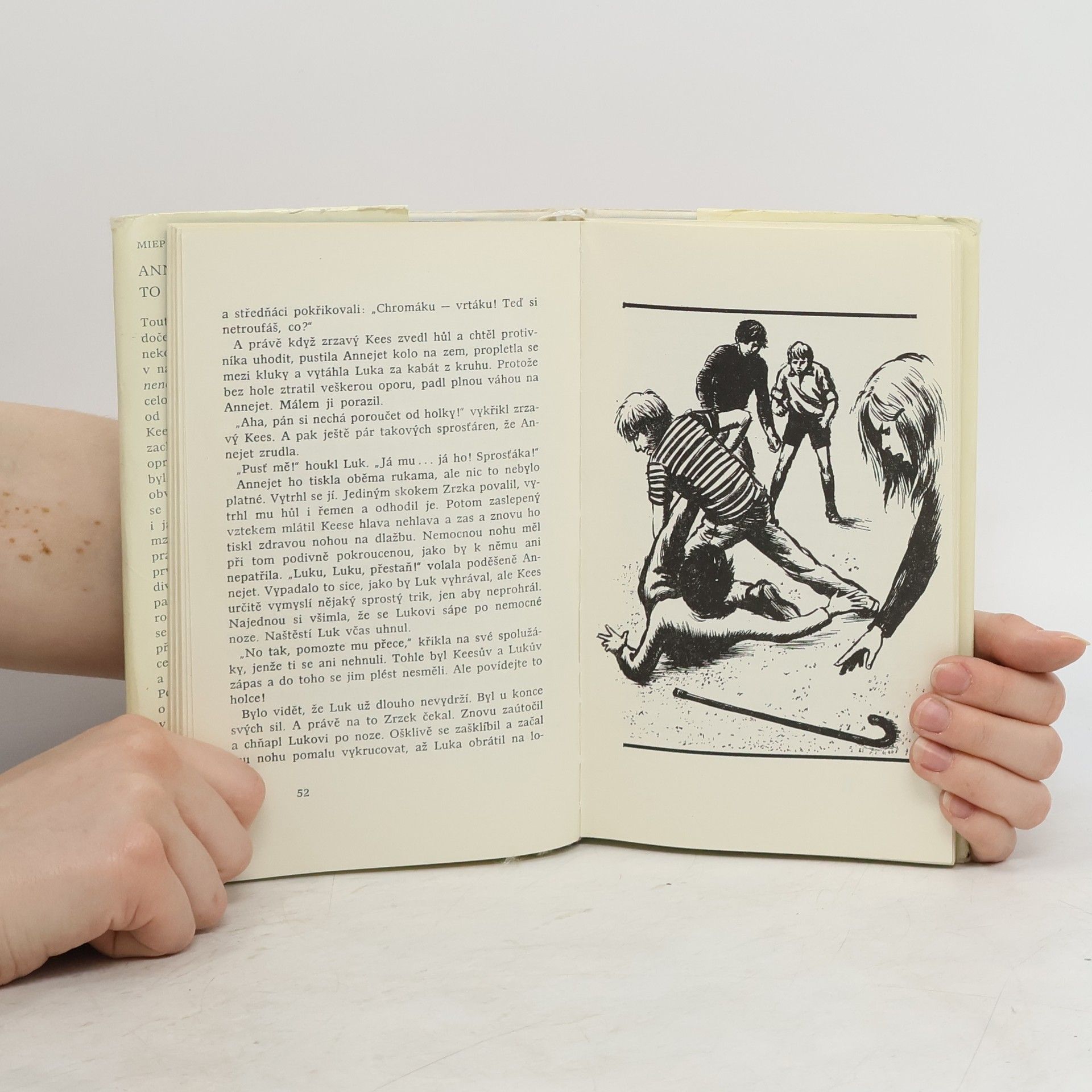 Kniha je rozdělena na dvě části: Annejet se představuje -- Annejet zasahuje. V prvním dílu (Annejet se představuje) románového seriálu z prostředí holandských gymnasistů líčí autorka těžkosti, jež prožívá studentka gymnasia v souvislosti s osudem jejího kulhajícího bratrance. Ve druhém (Annejet zasahuje) obrodný vliv jeho osudu na její dospívání. Psychologicky dobře pojatý příběh, řešící problematiku dospívání.