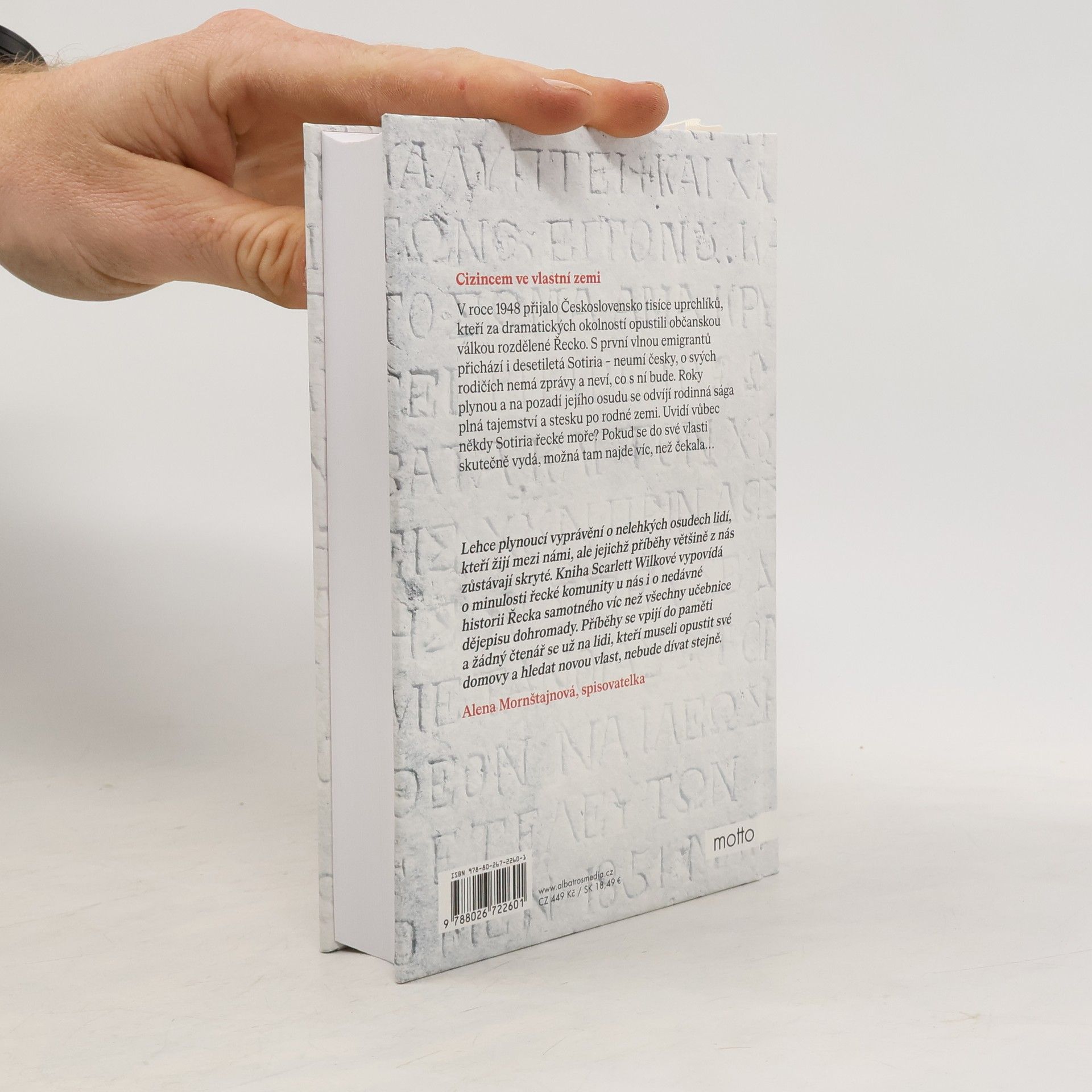 Cizincem ve vlastní zemi. Románový debut známé novinářky. V roce 1948 přijalo Československo tisíce uprchlíků, kteří za dramatických okolností opustili občanskou válkou rozdělené Řecko. S první vlnou emigrantů přichází i desetiletá Sotiria – neumí česky, o svých rodičích nemá zprávy a neví, co s ní bude. Roky plynou a na pozadí jejího osudu se odvíjí rodinná sága plná tajemství a stesku po rodné zemi. Uvidí někdy Sotiria řecké moře? Pokud se do své vlasti skutečně vydá, možná tam najde víc, než čekala… Dvě dcery řeckých uprchlíků, dva životy mezi dvěma zeměmi. Jaké to je, když se v deseti letech dítě ocitne samo v daleké cizí zemi, neumí jazyk, neví, kam se ztratili jeho rodiče, a vůbec nechápe, co se s ním stalo? Toto prožívaly v roce 1949 tisíce řeckých dětí, kterým po občanské válce v Řecku poskytlo Československo azyl. Mezi nimi byly i dvě osamocené holčičky Sotiria a Koula. Na pozadí jejích osudů se odvíjí rodinná sága plná tajemství a stesku po rodné zemi. Uvidí někdy Sotiria a Koula řecké moře? A kde jsou vlastně doma?