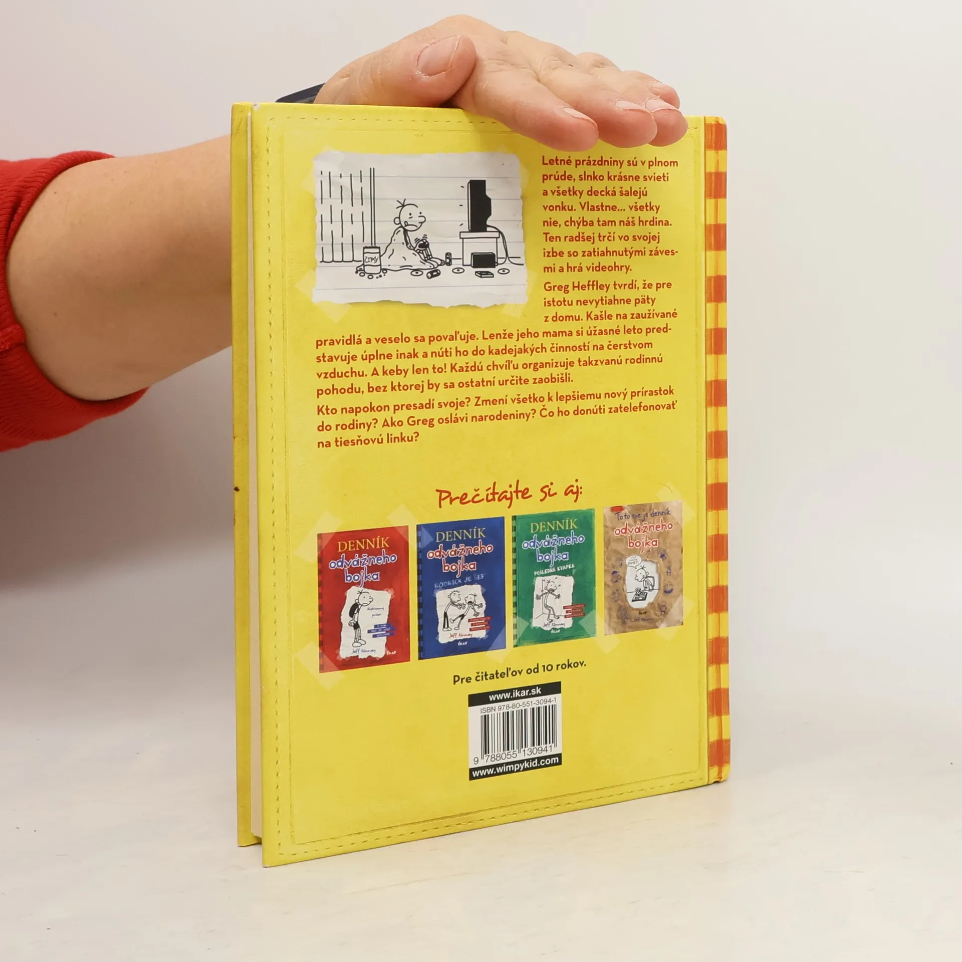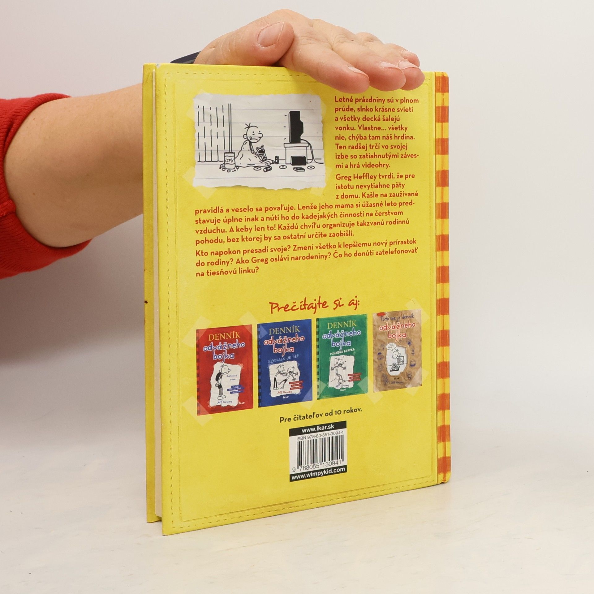 Letné prázdniny sú v plnom prúde, slnko krásne svieti a všetky decká šalejú vonku. Vlastne... všetky nie, chýba tam náš hrdina. Ten radšej trčí vo svojej izbe so zatiahnutými závesmi a hrá videohry. Greg Heffley tvrdí, že pre istotu nevytiahne päty z domu. Kašle na zaužívané pravidlá a veselo sa povaľuje. Lenže jeho mama si úžasné leto predstavuje úplne inak a núti ho do kadejakých činností na čerstvom vzduchu. A keby len to! Každú chvíľu organizuje takzvanú rodinnú pohodu, bez ktorej by sa ostatní určite zaobišli. Kto napokon presadí svoje? Zmení všetko k lepšiemu nový prírastok do rodiny? Ako Greg oslávi narodeniny? Čo ho donúti zatelefonovať na tiesňovú linku?