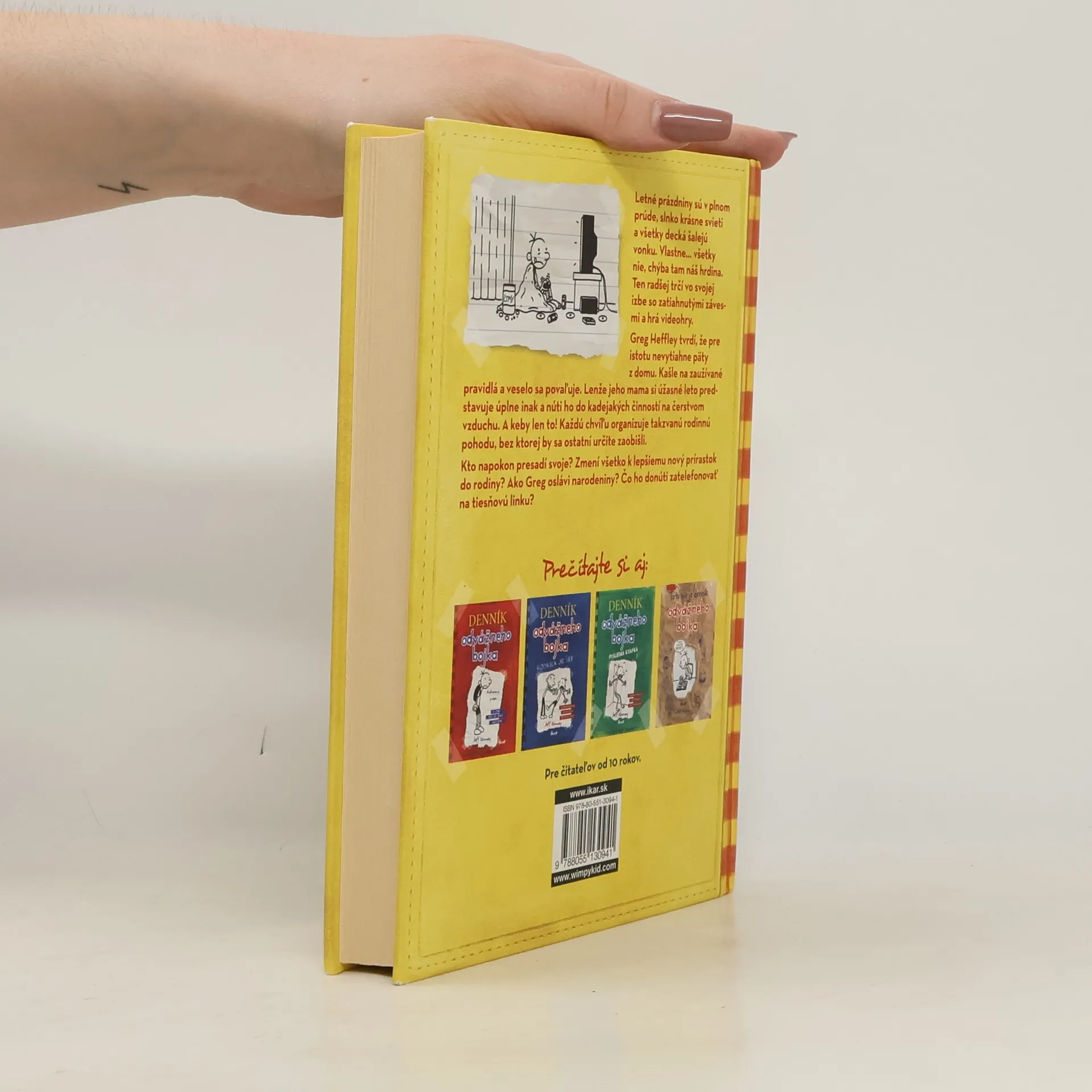Letné prázdniny sú v plnom prúde, slnko krásne svieti a všetky decká šalejú vonku. Vlastne... všetky nie, chýba tam náš hrdina. Ten radšej trčí vo svojej izbe so zatiahnutými závesmi a hrá videohry. Greg Heffley tvrdí, že pre istotu nevytiahne päty z domu. Kašle na zaužívané pravidlá a veselo sa povaľuje. Lenže jeho mama si úžasné leto predstavuje úplne inak a núti ho do kadejakých činností na čerstvom vzduchu. A keby len to! Každú chvíľu organizuje takzvanú rodinnú pohodu, bez ktorej by sa ostatní určite zaobišli. Kto napokon presadí svoje? Zmení všetko k lepšiemu nový prírastok do rodiny? Ako Greg oslávi narodeniny? Čo ho donúti zatelefonovať na tiesňovú linku?