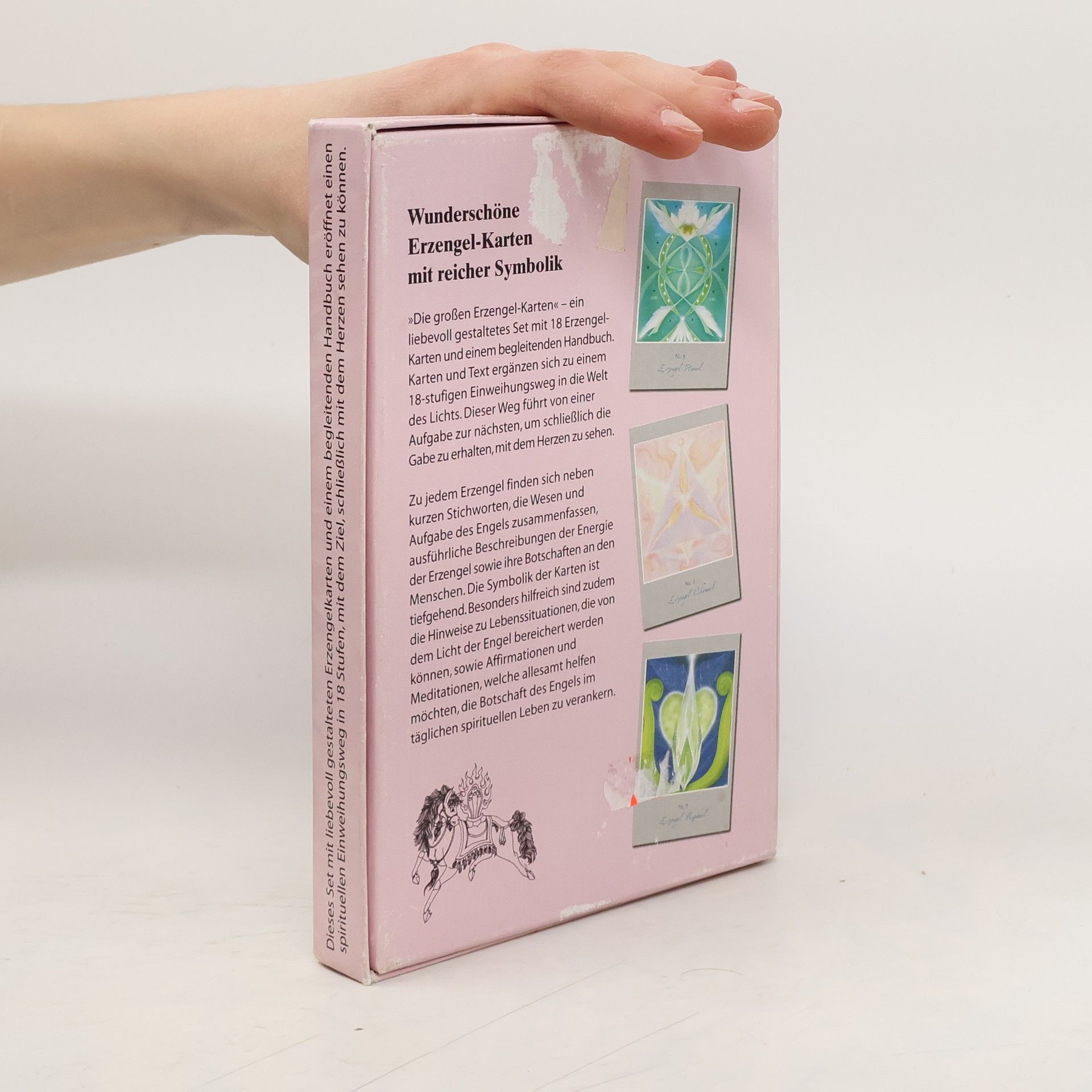 Dieses Set besteht aus 18 liebevoll gestalteten Erzengel-Karten und einem begleitenden Handbuch. Karten und Text ergänzen sich zu einem 18-stufigen Einweihungsweg in die Welt des Lichts. Dieser Weg führt Sie von einer Aufgabe zur nächsten, bis Sie schließlich in der Lage sind, mit dem Herzen zu sehen. Die 18 Erzengel sind ausführlich beschrieben. Die Informationen reichen von Stichworten, die das Wesen und die Aufgabe des Engels zusammenfassen, bis zu detaillierten Beschreibungen der Energie des Erzengels und seiner speziellen Botschaften an die Menschen. Die Symbolik der Karten ist tiefgehend. Sie enthalten Hinweise zur Situation des Fragenden sowie hilfreiche Affirmationen, die dazu beitragen, die Botschaft des Engels im täglichen Leben zu verankern und daraus Kraft zu schöpfen.