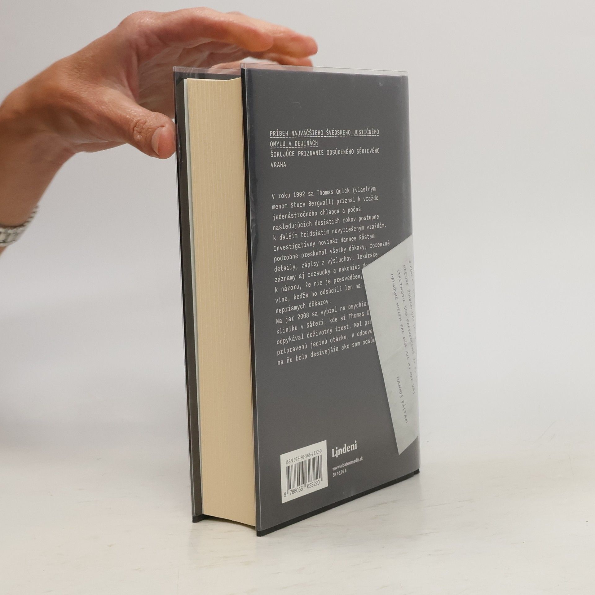 Príbeh najväčšieho švédskeho justičného omylu v dejinách. Šokujúce priznanie odsúdeného sériového vraha. V roku 1992 sa Thomas Quick (vlastným menom Sture Bergwall) priznal k vražde jedenásťročného chlapca a počas nasledujúcich desiatich rokov postupne k ďalším tridsiatim nevyriešeným vraždám. Investigatívny novinár Hannes Råstam podrobne preskúmal všetky dôkazy, forenzné detaily, zápisy z výsluchov, lekárske záznamy aj rozsudky a nakoniec dospel k názoru, že nie je presvedčený o Quickovej vine, keďže ho odsúdili len na základe nepriamych dôkazov. Na jar 2008 sa vybral na psychiatrickú kliniku v Säteri, kde si Thomas Quick odpykával doživotný trest. Mal preňho pripravenú jedinú otázku. A odpoveď na ňu bola desivejšia ako sám odsúdený...