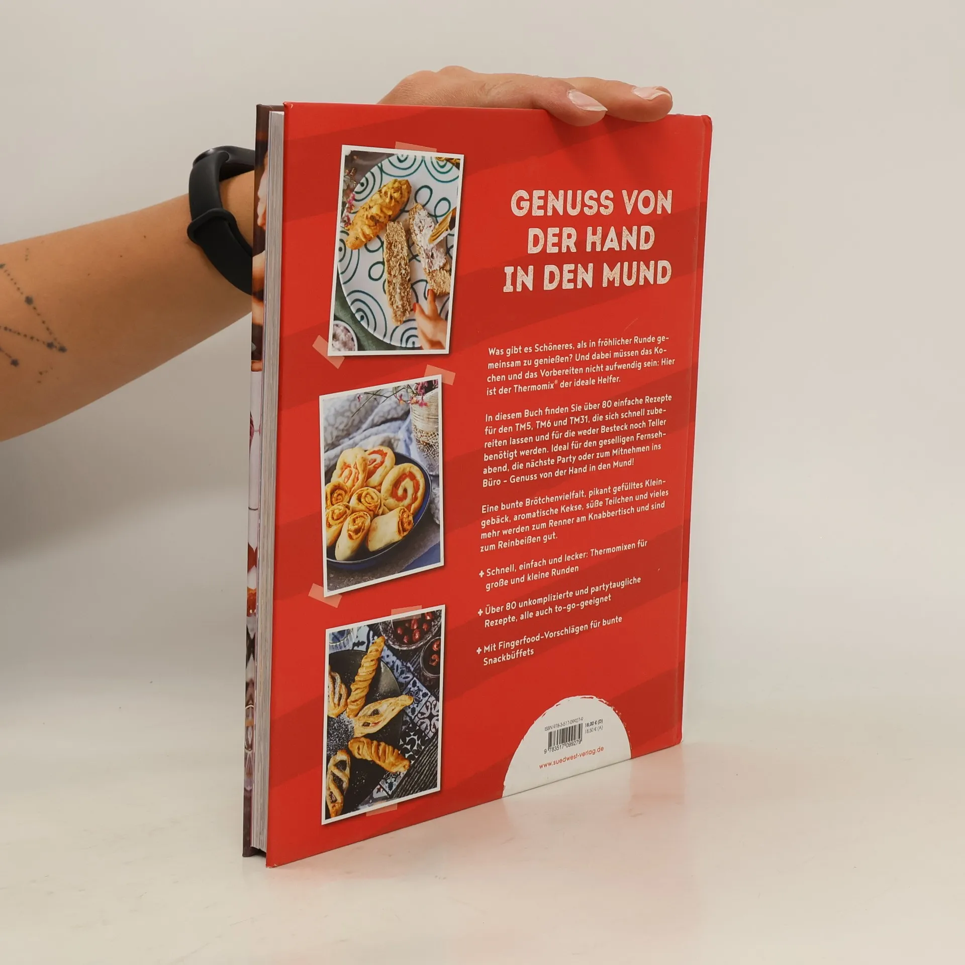 Genuss von der Hand in den Mund Was gibt es Schöneres, als in fröhlicher Runde gemeinsam zu genießen? Und dabei müssen das Kochen und das Vorbereiten nicht aufwendig sein: Hier kommen über 80 einfache Rezepte für den Thermomix®, die sich schnell zubereiten lassen und für die weder Besteck noch Teller benötigt werden. Ideal für den geselligen Fernsehabend, die nächste Party oder zum Mitnehmen ins Büro – Genuss von der Hand in den Mund! Eine bunte Brötchenvielfalt, pikant gefülltes Kleingebäck, aromatische Kekse, süße Teilchen und vieles mehr werden zum Renner am Knabbertisch und sind zum Reinbeißen gut. Ausstattung: ca. 70 Farbfotos