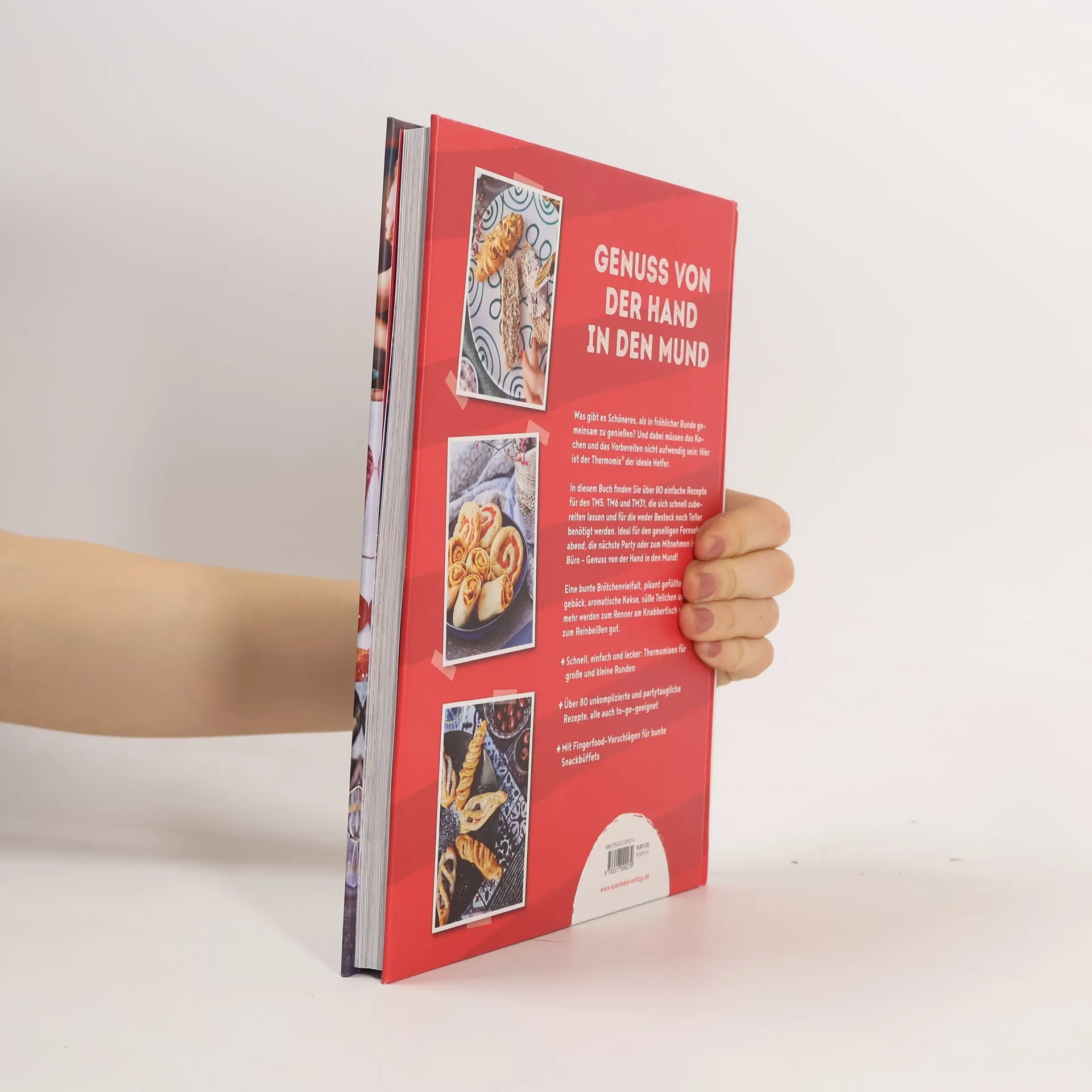 Genuss von der Hand in den Mund Was gibt es Schöneres, als in fröhlicher Runde gemeinsam zu genießen? Und dabei müssen das Kochen und das Vorbereiten nicht aufwendig sein: Hier kommen über 80 einfache Rezepte für den Thermomix®, die sich schnell zubereiten lassen und für die weder Besteck noch Teller benötigt werden. Ideal für den geselligen Fernsehabend, die nächste Party oder zum Mitnehmen ins Büro – Genuss von der Hand in den Mund! Eine bunte Brötchenvielfalt, pikant gefülltes Kleingebäck, aromatische Kekse, süße Teilchen und vieles mehr werden zum Renner am Knabbertisch und sind zum Reinbeißen gut. Ausstattung: ca. 70 Farbfotos