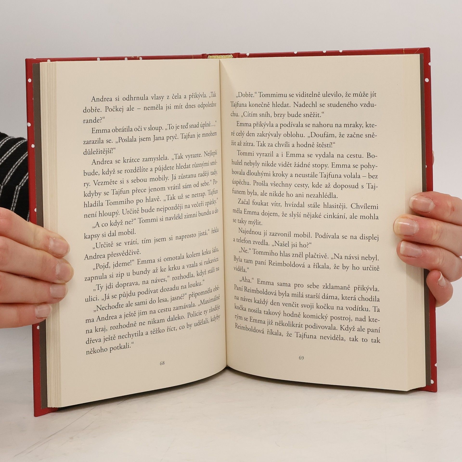 Pes na zkoušku? A zrovna na Vánoce? Rozkošného křížence, kterého rodiče přivedli z útulku, si Tommi a Emma ihned zamilují. Tajfun zbožňuje louže, rybníčky, zkrátka vodu. Čest svému jménu dělá spolehlivě – kam vběhne, tam způsobí zmatky a chaos. Jednoho dne pohár tatínkovy trpělivosti přeteče a psa vyžene. Tommi s Emmou se ho samozřejmě vydají hledat. Je magický čas adventu, kdy se plní přání. Podaří se jim Tajfuna najít? A jakou roli sehraje Ježíšek?