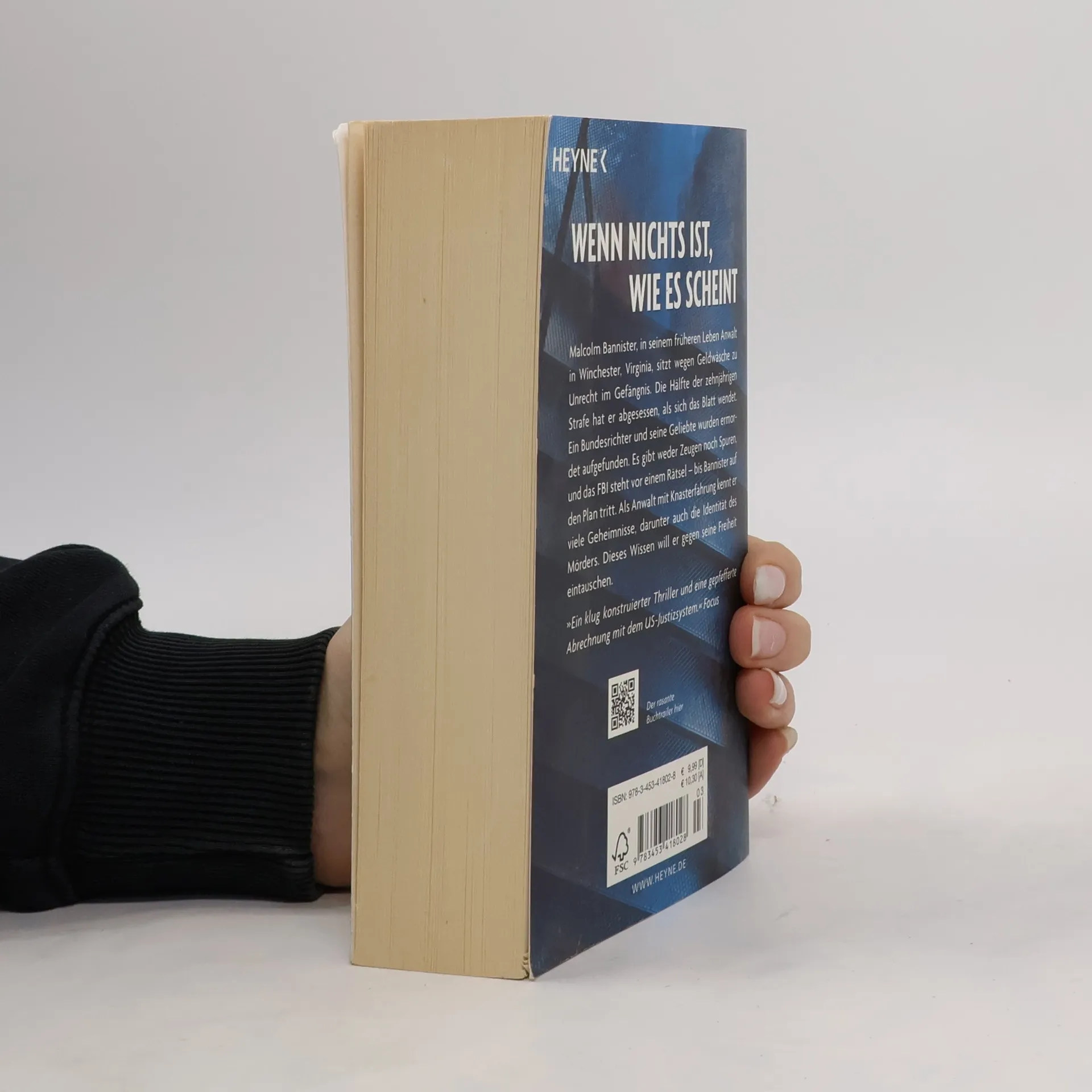 Wenn nichts ist, wie es scheint ... Malcolm Bannister, in seinem früheren Leben Anwalt in Winchester, Virginia, sitzt wegen Geldwäsche zu Unrecht im Gefängnis. Die Hälfte der zehnjährigen Strafe hat er abgesessen, als sich das Blatt wendet. Ein Bundesrichter und seine Geliebte wurden ermordet aufgefunden. Es gibt weder Zeugen noch Spuren, und das FBI steht vor einem Rätsel – bis Bannister auf den Plan tritt. Als Anwalt mit Knasterfahrung kennt er viele Geheimnisse, darunter auch die Identität des Mörders. Dieses Wissen will er gegen seine Freiheit eintauschen.