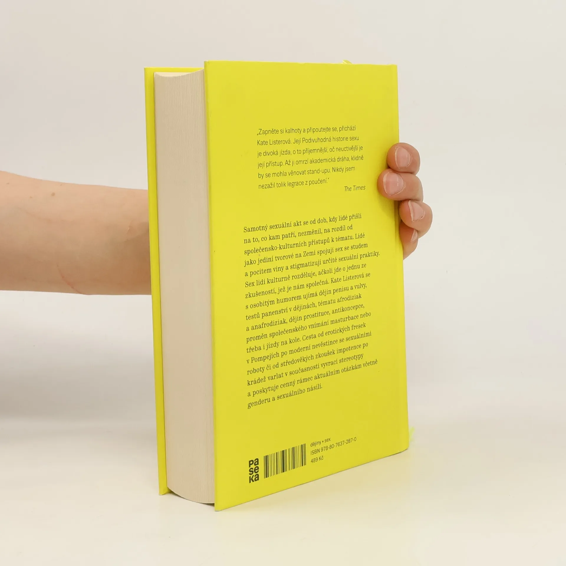 Samotný sexuální akt se od dob, kdy lidé přišli na to, co kam patří, nezměnil. Na rozdíl od společensko-kulturních přístupů k tématu. Lidé jako jediní tvorové na Zemi spojují sex se studen a pocitem viny a stigmatizují určité sexuální praktiky. Sex lidi kulturně rozděluje, ačkoli jde o jednu ze zkušeností, jež je nám společná. Katy Listerová se s osobitým humorem ujímá dějin penisu a vuly, testů panenství v dějinách, tématu afrodiziak a anafrodiziak, dějin prostituce, antikoncepce, proměn společenského vnímání masturbace nebo třeba i jízdy na kole. Cesta od erotických fresek v Pompejích po moderní nevestince se sexuálními roboty či od středověkých zkoušek impotence po krádež varlat v současnosti vyvrací stereotypy a poskytuje cenný rámec aktuálním otázkám včetně genderu a sexuálního násilí. Text doplňují dobové ilustrace, často překvapivé, vtipné a někdy děsivé.