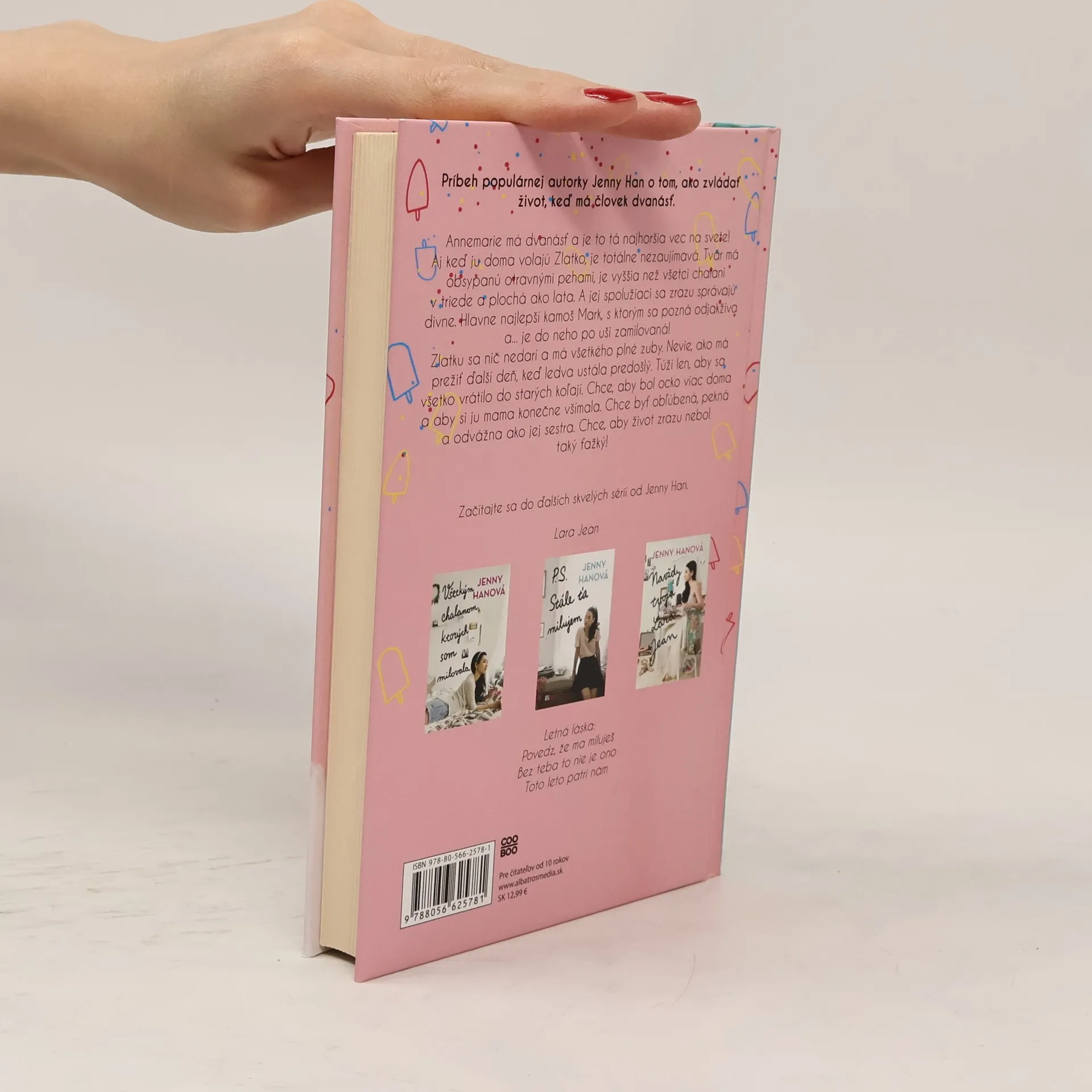 Nová kniha populárnej autorky Jenny Han! Príbeh populárnej autorky Jenny Han o tom, ako zvládať život, keď má človek dvanásť. Annemarie má dvanásť a je to tá najhoršia vec na svete! Aj keď ju doma volajú Zlatko, je totálne nezaujímavá. Tvár má obsypanú otravnými pehami, je vyššia než všetci chalani v triede a plochá ako lata. A jej spolužiaci sa zrazu správajú divne. Hlavne najlepší kamoš Mark, s ktorým sa pozná odjakživa a... je do neho po uši zamilovaná! Zlatku sa nič nedarí a má všetkého plné zuby. Nevie, ako má prežiť ďalší deň, keď sa ledva ustála predošlý. Túži len, aby sa všetko vrátilo do starých koľají. Chce, aby bol ocko viac doma a aby si ju mama konečne všímala. Chce byť obľúbená, pekná a odvážna ako jej sestra. Chce, aby život zrazu nebol taký ťažký!