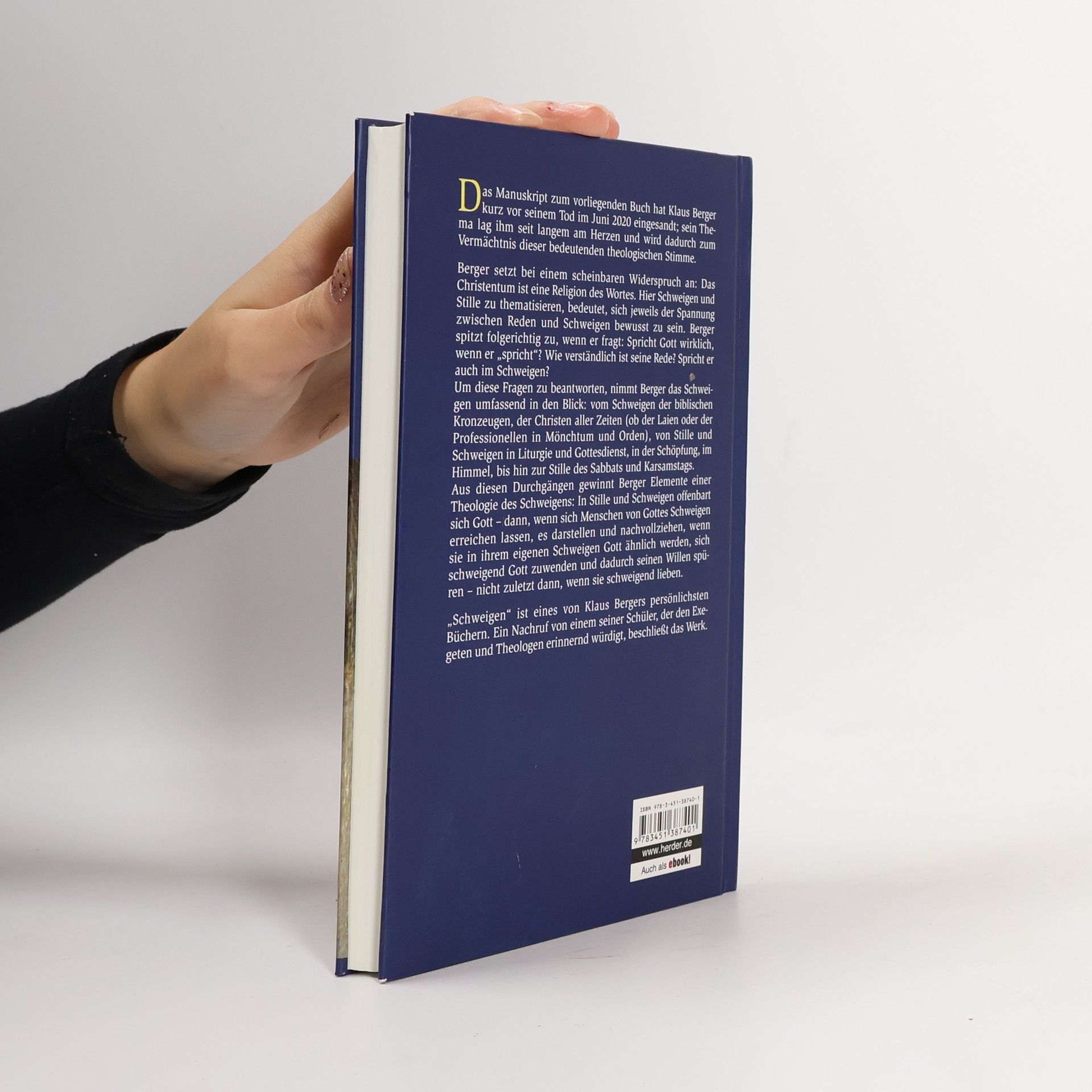 Das Manuskript zum vorliegenden Buch hat Klaus Berger kurz vor seinem Tod im Juni 2020 eingesandt; sein Thema lag ihm seit langem am Herzen und wird dadurch zum Vermächtnis dieser bedeutenden theologischen Stimme. Klaus Berger nimmt das Schweigen umfassend in den Blick: jenes der biblischen Kronzeugen, das Schweigen in Mystik und Mönchtum, das Schweigen in der Liturgie, in der Schöpfung, im Himmel, die Stille des Sabbats und Karsamstags; und er zeigt, dass auch das Geheimnis vom Schweigen umfangen ist. Schweigen, so formuliert Berger, ist im Christentum ein Weg und Modus der Offenbarung Gottes – besonders dann, wenn sich Menschen von Gottes Schweigen erreichen lassen, es darstellen und nachvollziehen, wenn sie in ihrem eigenen Schweigen Gott ähnlich werden, sich schweigend Gott zuwenden und dadurch seinen Willen spüren – nicht zuletzt dann, wenn sie schweigend lieben.