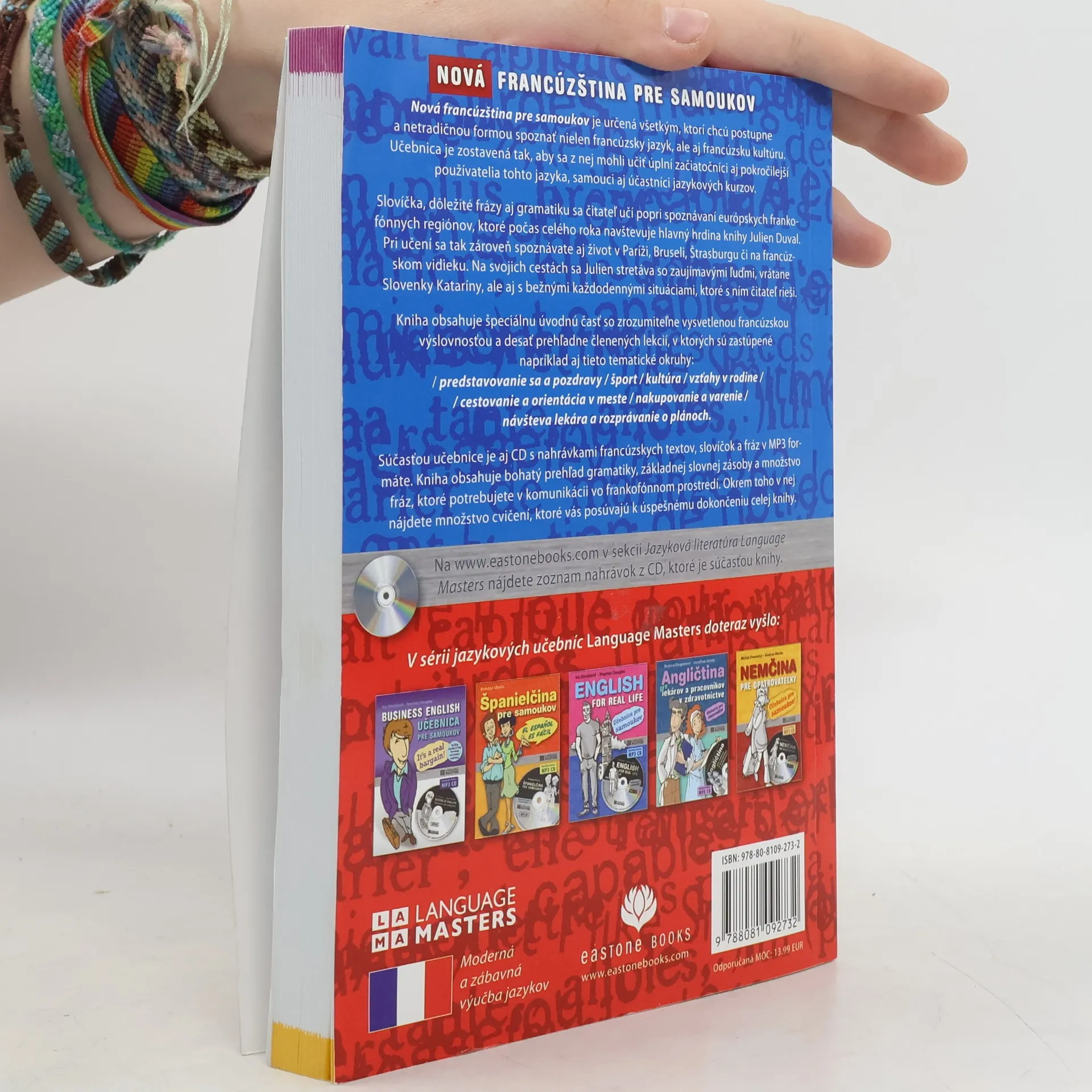 Táto kniha je určená všetkým, ktorí chcú postupne a netradičnou formou spoznať nielen francúzsky jazyk, ale aj francúzsku kultúru. Učebnica je zostavená tak, aby sa z nej mohli učiť úplní začiatočníci aj pokročilejší používatelia tohto jazyka, samouci aj účastníci jazykových kurzov. Slovíčka, dôležité frázy aj gramatiku sa čitateľ učí popri spoznávaní európskych frankofónnych regiónov, ktoré počas celého roka navštevuje hlavný hrdina knihy Julien Duval. Spoznáva tak život v Paríži, Bruseli, Štrasburgu či na francúzskom vidieku. Učebnica obsahuje špeciálnu úvodnú časť so zrozumiteľne vysvetlenou francúzskou výslovnosťou a desať prehľadne členených lekcií. Jej súčasťou je aj CD s nahrávkami francúzskych textov, slovíčok a fráz v MP3 formáte. Kniha obsahuje bohatý prehľad gramatiky, základnej slovnej zásoby a množstvo fráz, ktoré potrebujete v bežnej komunikácii vo frankofónnom prostredí. Obsahuje bonus: MP3 CD.