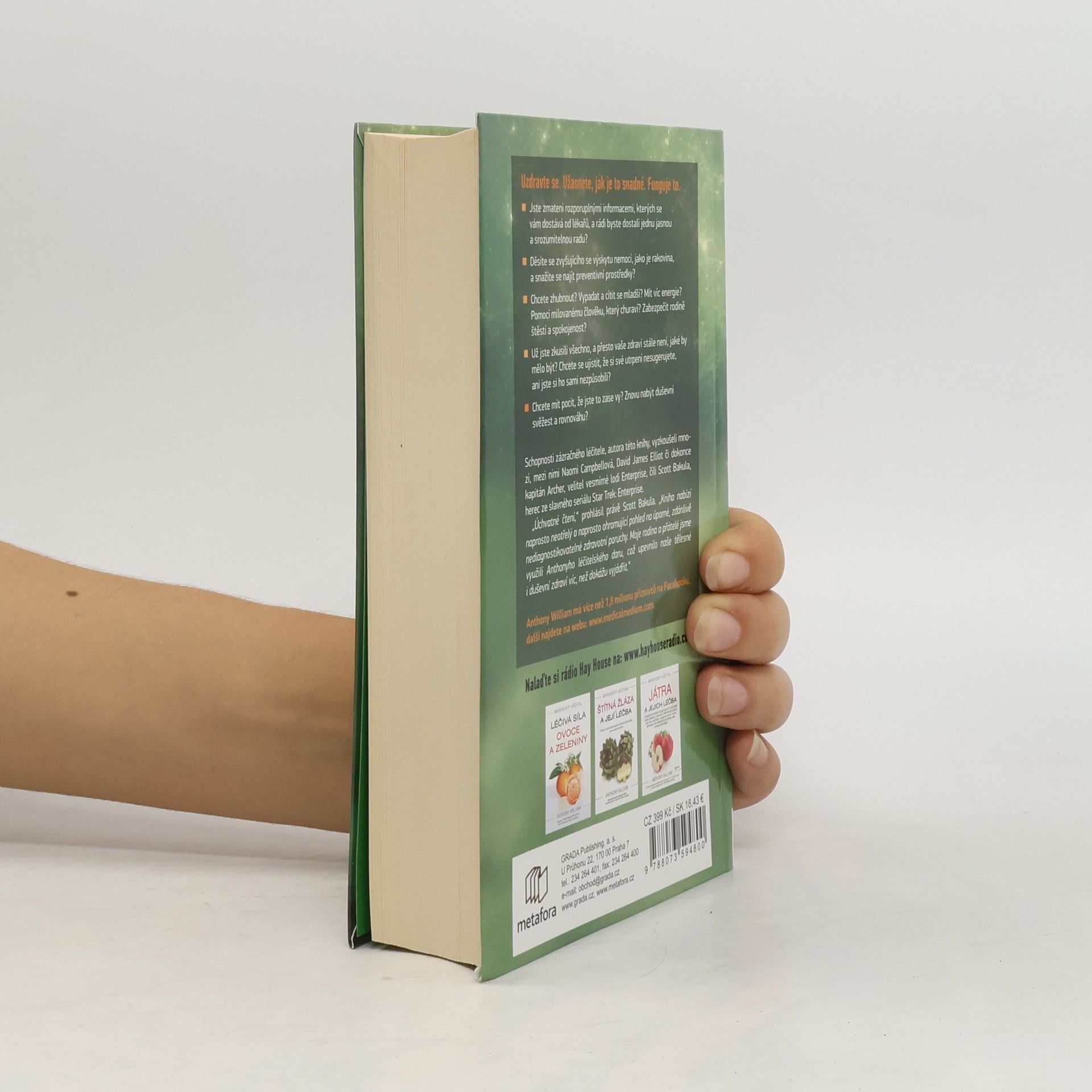 Novodobé médium odhaluje tajemství záhadných nemocí. Uzdravte se. Užasnete, jak je to snadné. Funguje to. Jste zmateni rozporuplnými informacemi, kterých se vám dostává od lékařů, a rádi byste dostali jednu jasnou, srozumitelnou radu? Děsíte se rakoviny? Chcete zhubnout? Vypadat a cítit se mladší? Mít víc energie? Nebo jste prostě nemocní a nikdo neví, co s vámi? Dokonce vám naznačují, že jste blázni a že si své potíže sugerujete. Už jste všechno zkusili, všude zašli, a přesto vám žádný doktor nepomohl. Pak jste na té správné adrese. Léčitel Anthony William zná cestu z toho začarovaného kruhu. Tam někde ve vyšších sférách jsou uložené veškeré informace. Řešení všeho. Léčebné metody, které lékařská věda objeví až pár let či dokonce desetiletí. A Anthony je zná.