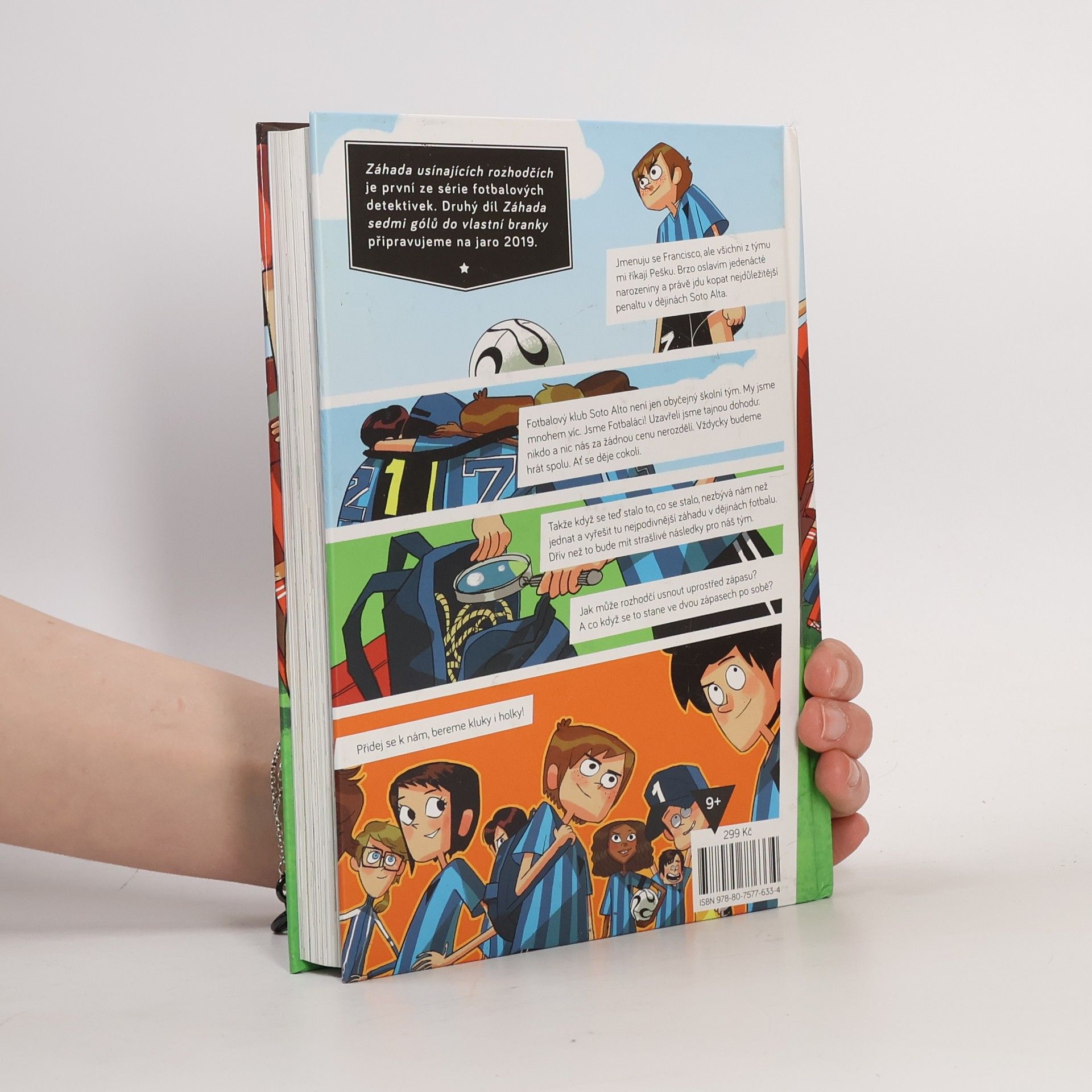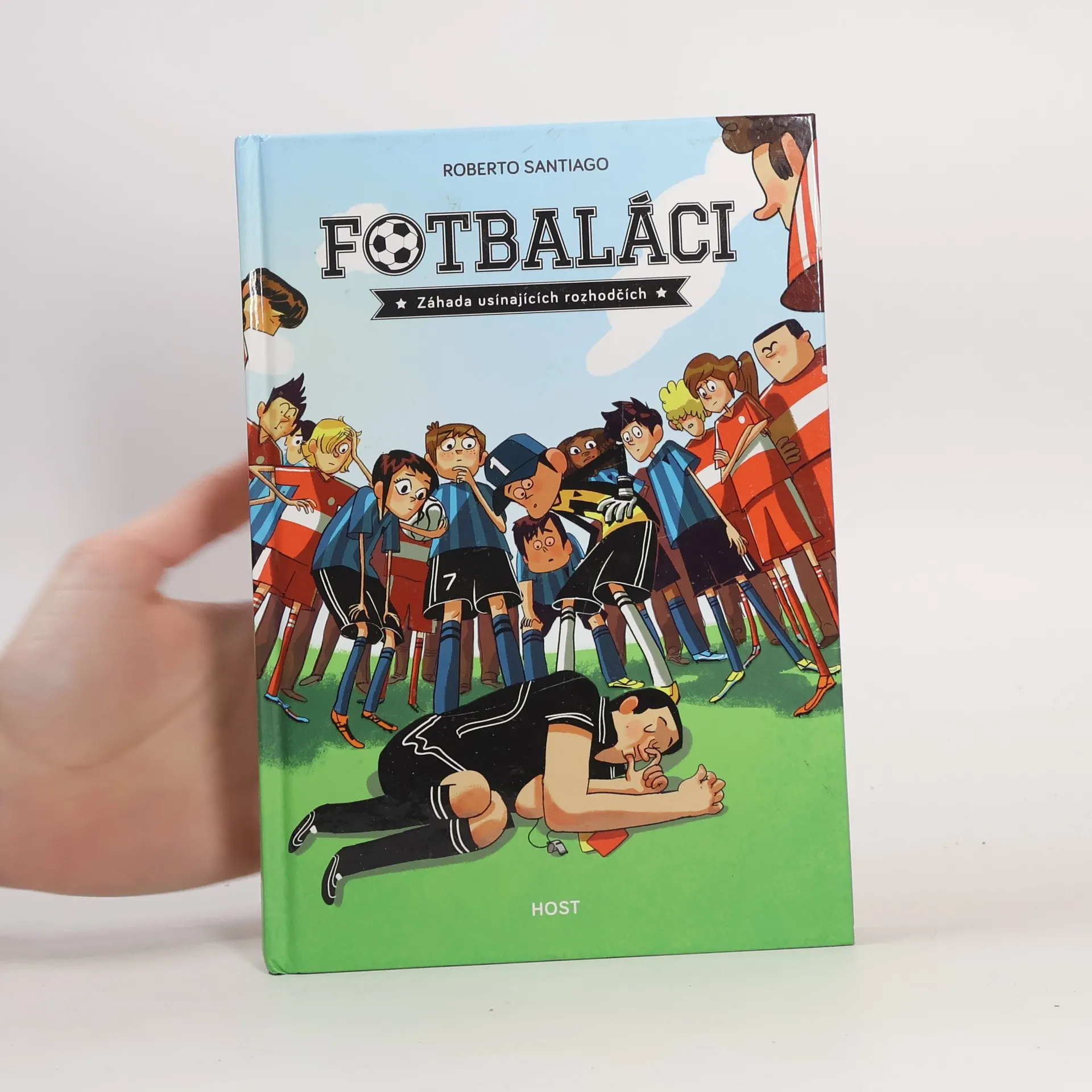 Jmenuju se Francisco, ale všichni z týmu mi říkají Pako. Nedávno mi bylo jedenáct a právě jdu kopat tu nejdůležitější penaltu v dějinách Soto Alta. Sedmý fotbalový tým Soto Alto není jen obyčejný školní oddíl. My jsme mnohem víc. My jsme Fotbaláci! Máme dohodu: nikdo a nic nás za žádnou cenu nerozdělí. Vždycky budeme hrát spolu. Ať se děje cokoli. Takže když se stalo to, co se stalo, neměli jsme jinou možnost než začít jednat: zapojit mozkové závity a přijít na kloub té nejpodivnější záhadě, jakou kdy kdo ve fotbale zažil. Jak může rozhodčí usnout uprostřed zápasu? Jak můžou usnout dva rozhodčí ve dvou zápasech? Záhada usínajících rozhodčích je první ze série fotbalových detektivek. Druhý díl Tajemství sedmi gólů do vlastní branky připravujeme na jaro 2019. Pro čtenáře od devíti let