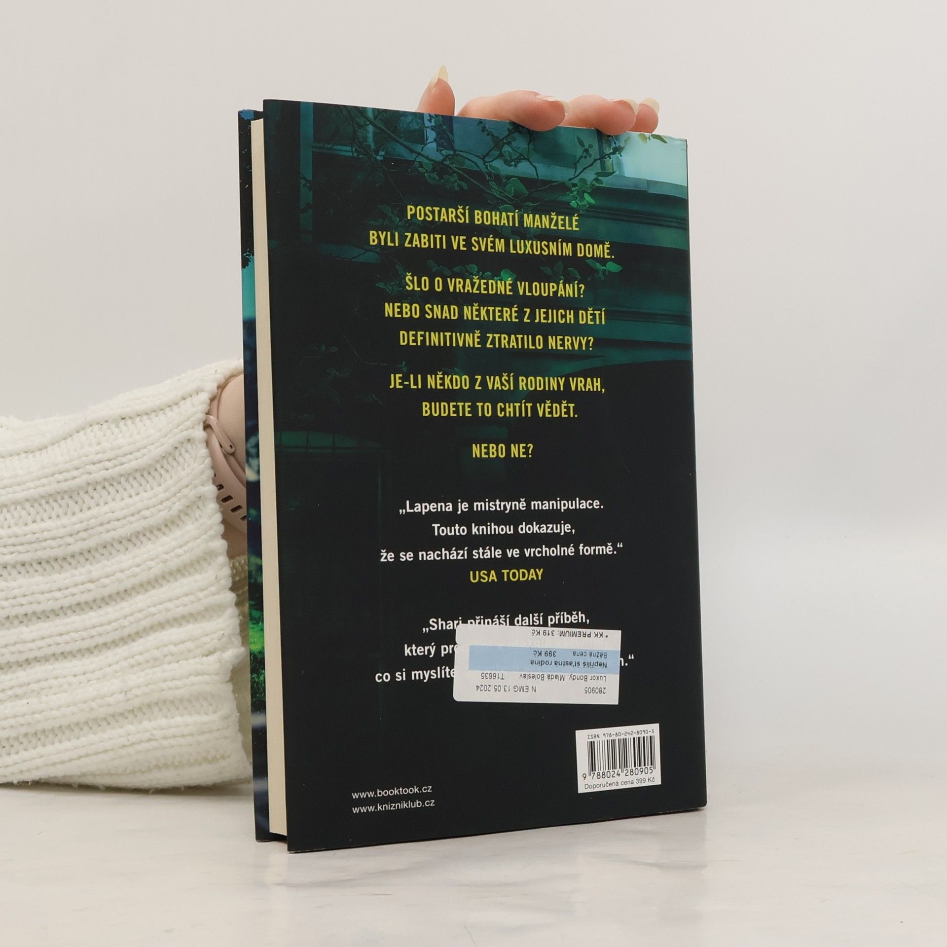 Nejnovější příběh mistryně psychothrilleru – opět dokonale drásavý a neodložitelný. Brecken Hill je drahá adresa. Musíte mít hodně peněz, abyste tu mohli bydlet. Tak jako Fred a Sheila Mertonovi. Žádné bohatství vás však neochrání, když vám u dveří zazvoní vrah. Manželé Mertonovi byli brutálně zabiti pár hodin poté, co přivítali na velikonoční nedělní večeři své tři dospělé děti. Ty jejich smrt pochopitelně těžce nesou. Nebo ne? Na každého z nich čeká pohádkové dědictví. Svého náladového otce nesnášeli a netečná matka se jich nikdy nezastala. Na jednoho z nich to bylo možná už příliš. Ale na koho? Je-li váš sourozenec vrah, chtěli byste to nejspíš vědět...
