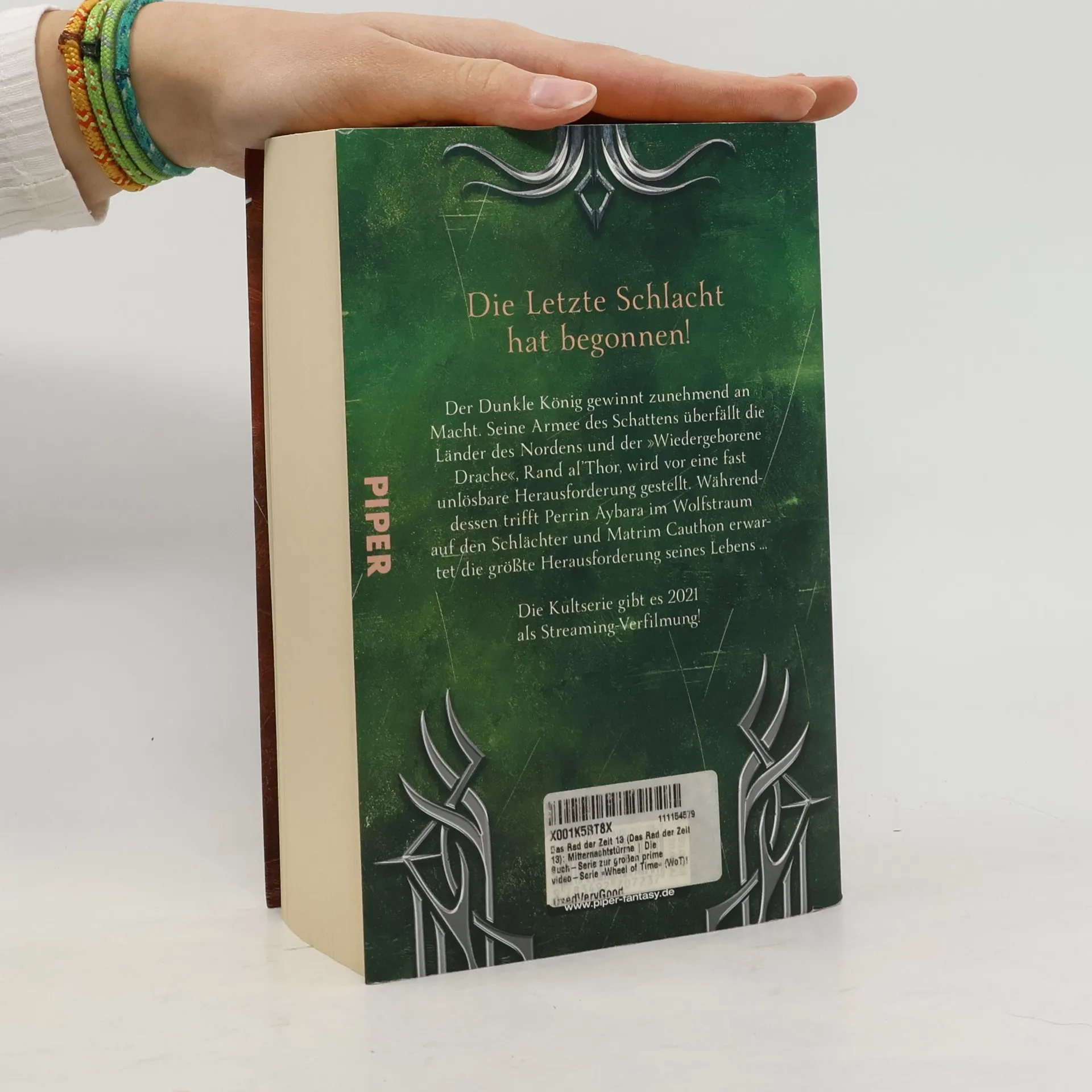 Die Letzte Schlacht hat begonnen! Der Dunkle König gewinnt zunehmend an Macht. Seine Armee des Schattens überfällt die Länder des Nordens und der »Wiedergeborene Drache«, Rand al’Thor, wird vor eine fast unlösbare Herausforderung gestellt. Währenddessen trifft Perrin Aybara im Wolfstraum auf den Schlächter und Matrim Cauthon erwartet die größte Herausforderung seines Lebens … Die Buch-Serie zur großen prime video-Serie »Das Rad der Zeit«!
