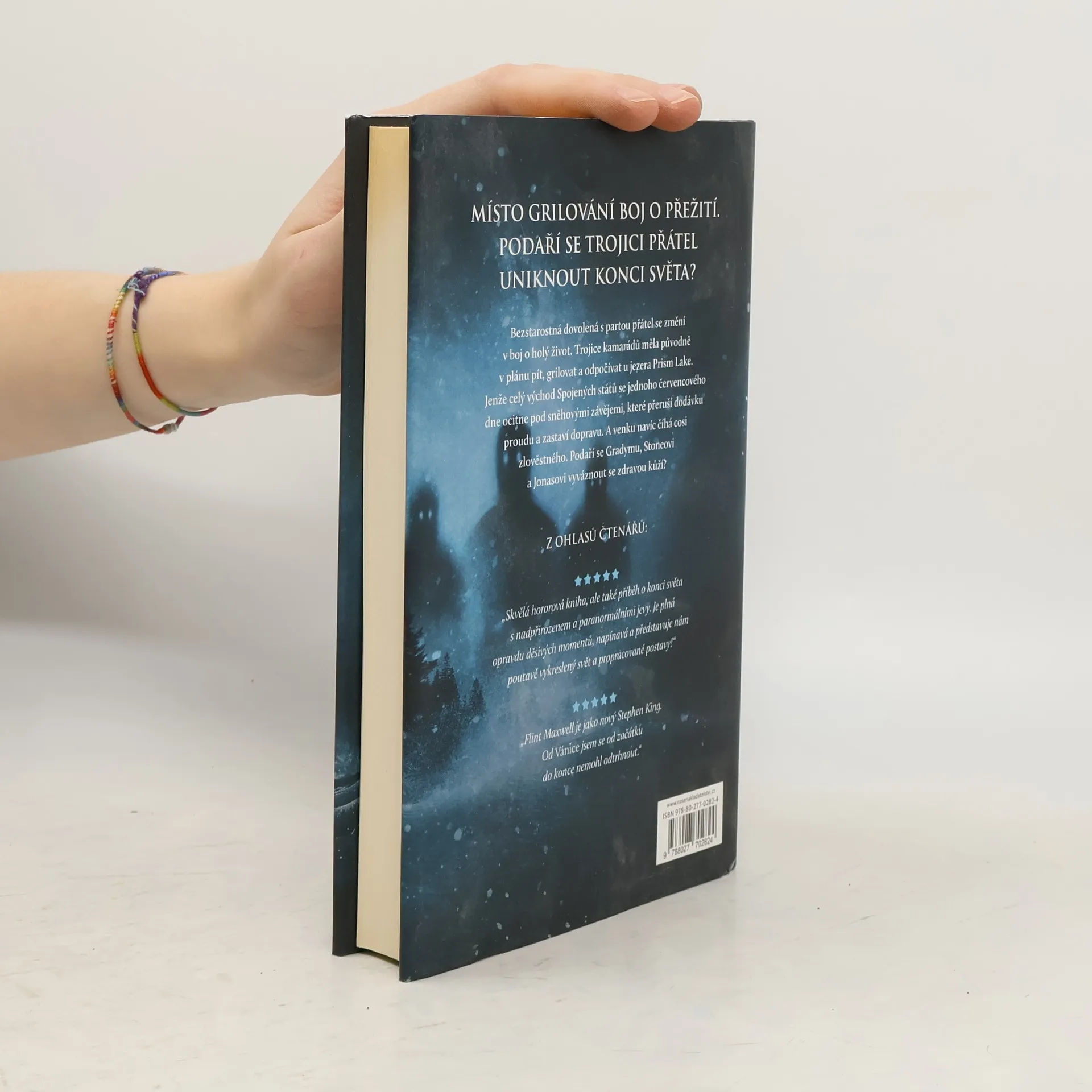 Nastal konec světa. A všechno začalo jedinou sněhovou vločkou. Po tragické nehodě v práci netouží Grady Miller po ničem jiném než před vším utéct. To se mu podaří se dvěma nejlepšími přáteli, Stonem a Jonasem. Všichni tři na chvíli opouští svůj každodenní život, v němž si každý zažil své, a vydávají se na dovolenou na jih k jezeru Prism Lake, kam spolu každý rok jezdívali jako děti. Teď mají na celý prosluněný víkend jediný plán: pít, grilovat a odpočívat. Když se však celý východ Spojených států ocitne kvůli obrovské sněhové bouři pod metrovými závějemi, které přeruší dodávku proudu, a cesty přestanou být sjízdné, jejich plán je v troskách. Bezstarostná dovolená tří přátel se promění v boj o holý život. Musí spojit síly, aby z celé situace vyvázli. Venku totiž nevládne jen chlad… Ale také cosi zlověstného…