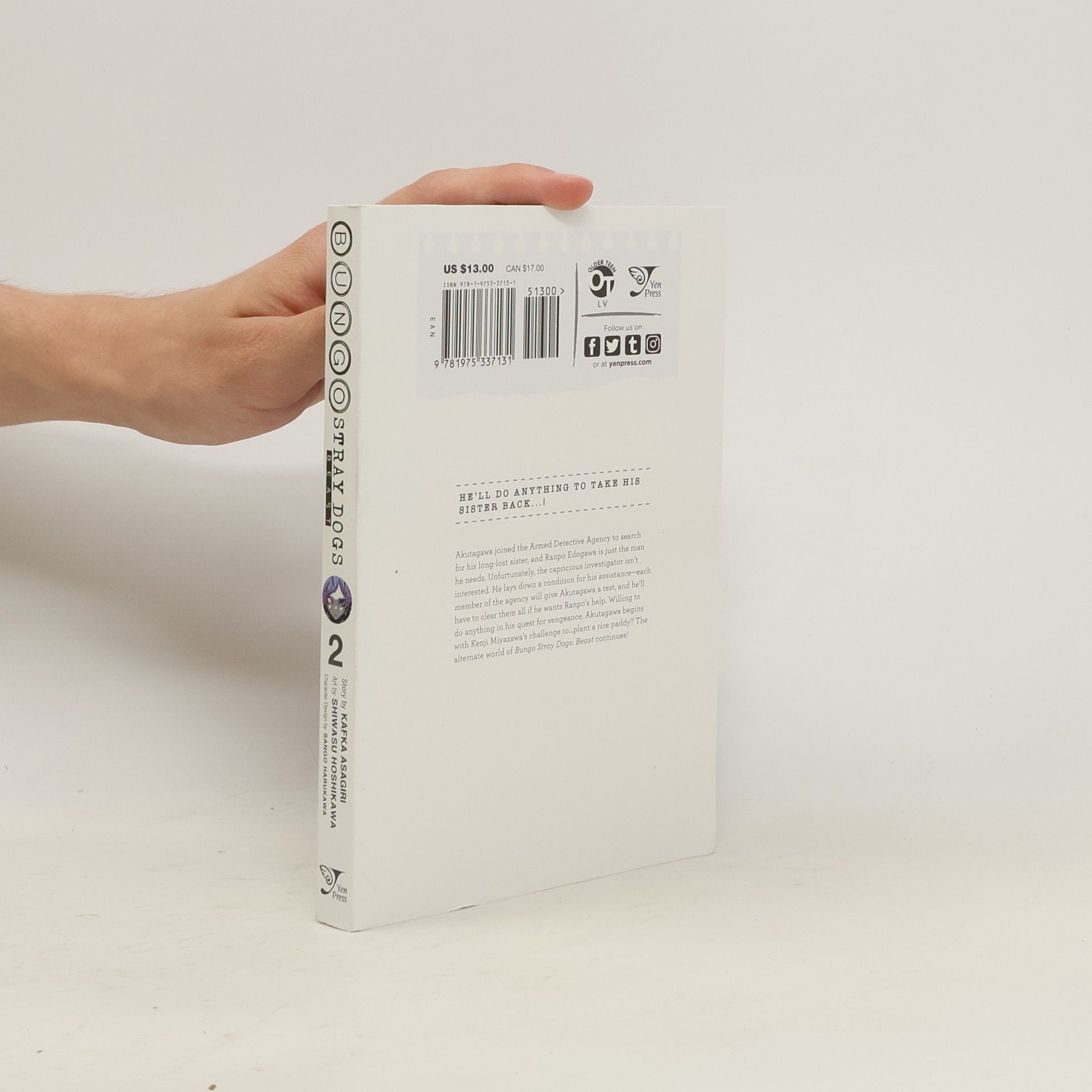 "In the parallel universe of Bungo Stray Dogs: Beast, Ryuunosuke Akutagawa's desperate mission to save his younger sister leads to him being recruited by the armed detective agency! But standing in his way is none other than the fearsome White Reaper of the Port Mafia-Atsushi Nakajima. As darkness and light face off, what fate awaits the two...?"--
