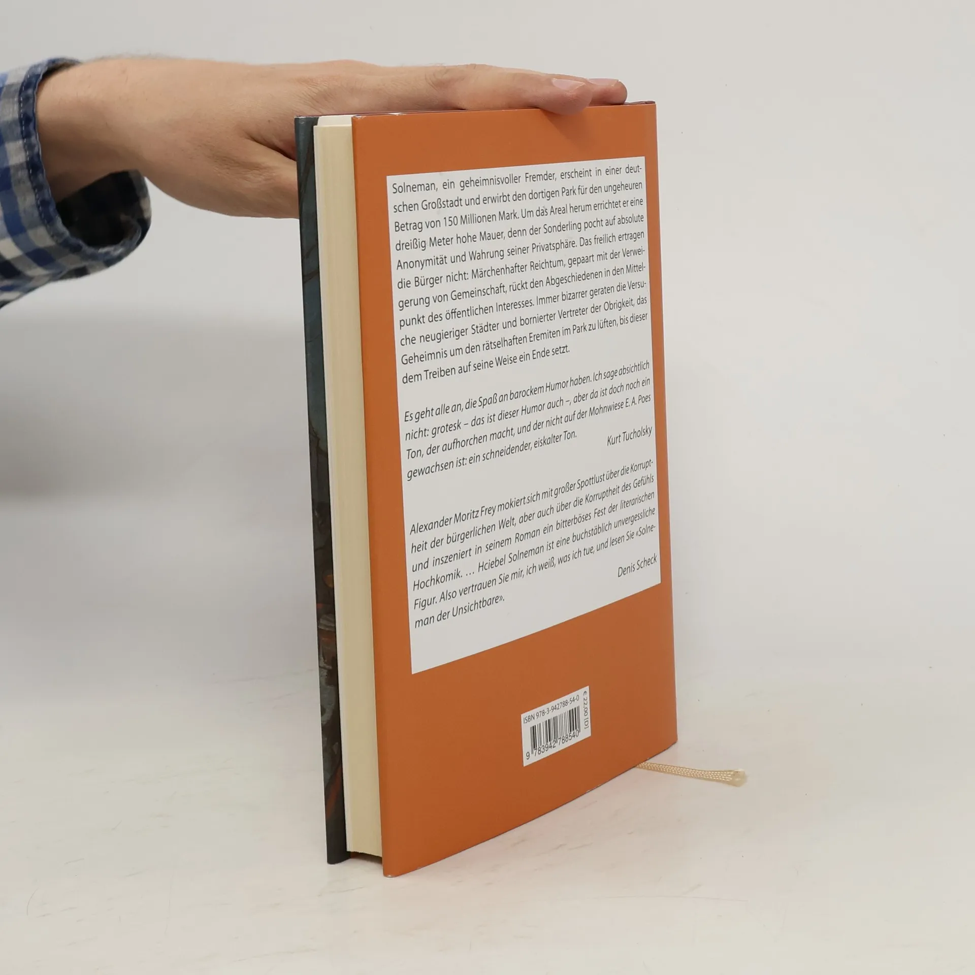 Solneman, ein geheimnisvoller Fremder, erscheint in einer großen Stadt und erwirbt den dortigen Park für den ungeheuren Betrag von 150 Millionen Mark. Um das Areal herum errichtet er eine dreißig Meter hohe Mauer, denn der Sonderling, dessen wahre Gestalt niemand kennt, pocht auf absolute Anonymität und Wahrung seiner Privatsphäre. Das freilich ertragen die Bürger nicht: Märchenhaft er Reichtum, gepaart mit der Verweigerung von Gemeinschaft , rücken den Abgeschiedenen in den Mittelpunkt des öffentlichen Interesses. Immer bizarrer geraten die Versuche neugieriger Städter und bornierter Vertreter der Obrigkeit, das Geheimnis um den rätselhaften Eremiten im Park zu lüften, bis dieser dem Treiben auf seine Weise ein Ende setzt. Ein satirischer Roman von 1914, der bis heute nichts von seiner Frische und Kraft eingebüßt hat.
