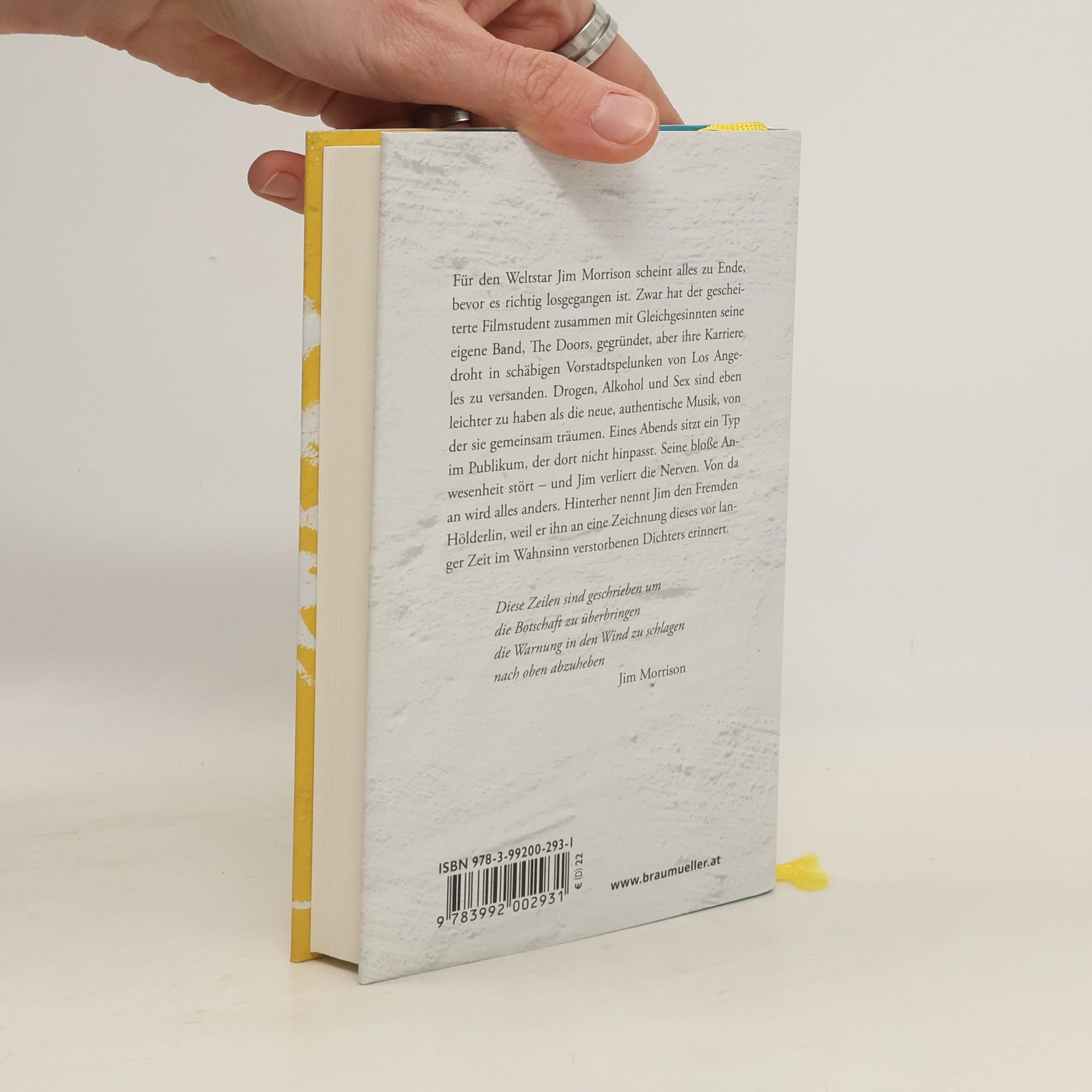 Für den Weltstar Jim Morrison scheint alles zu Ende, bevor es richtig losgegangen ist. Zwar hat der gescheiterte Filmstudent zusammen mit Gleichgesinnten seine eigene Band, The Doors, gegründet, aber ihre Karriere droht in schäbigen Vorstadtspelunken von Los Angeles zu versanden. Drogen, Alkohol und Sex sind eben leichter zu haben als die neue, authentische Musik, von der sie gemeinsam träumen. Eines Abends sitzt ein Typ im Publikum, der dort nicht hinpasst. Seine bloße Anwesenheit stört und Jim verliert die Nerven. Von da an wird alles anders. Hinterher nennt Jim den Fremden Hölderlin, weil er ihn an eine Zeichnung dieses vor langer Zeit im Wahnsinn verstorbenen Dichters erinnert. Jim Morrison soll im Sommer 1971 in Paris gestorben sein. Angeblich in einer Badewanne ertrunken. Doch niemand, der ihn kannte, hat seine Leiche gesehen. Vielleicht liegt ein leerer Sarg in jenem Grab auf dem Friedhof Père Lachaise, auf das viele Menschen bis heute frische Blumen legen.