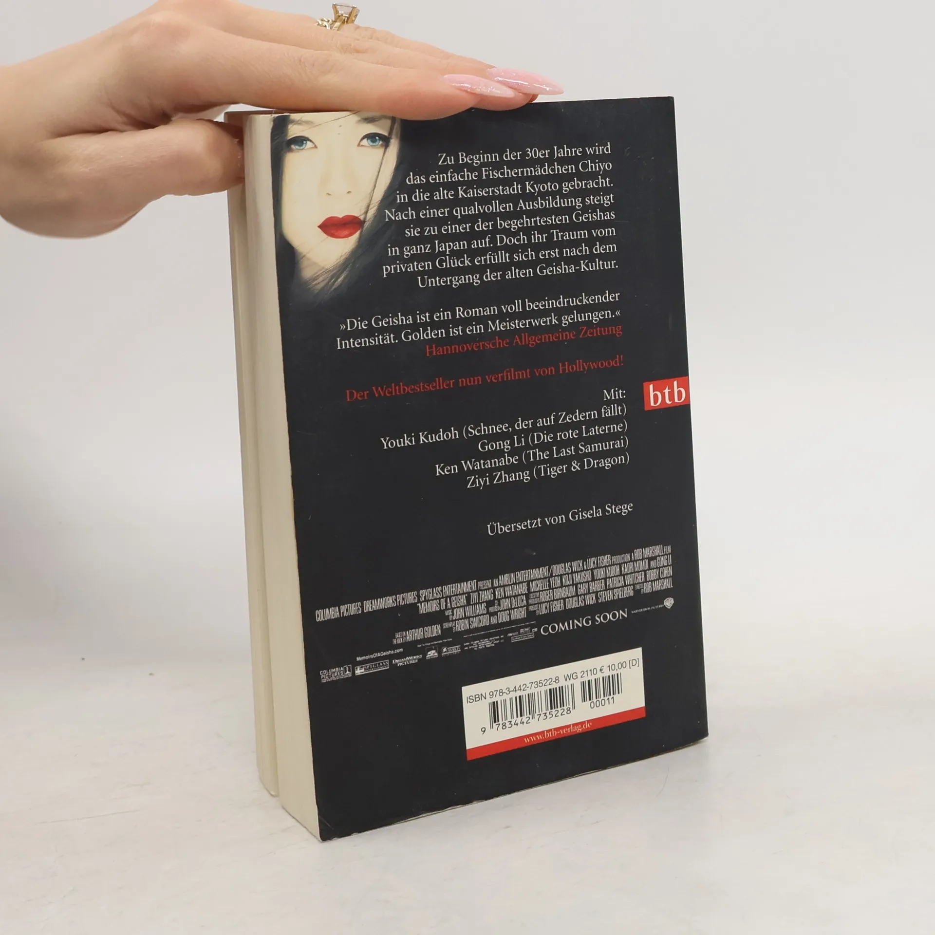 Die berührende Geschichte einer jungen Geisha. Zu Beginn der 30er Jahre wird das einfache Fischermädchen Chiyo in die alte Kaiserstadt Kyoto gebracht. Nach einer qualvollen Ausbildung steigt sie zu einer der begehrtesten Geishas in ganz Japan auf. Doch ihr Traum vom privaten Glück erfüllt sich erst nach dem Untergang der alten Geisha-Kultur. Der Weltbestseller – nun verfilmt von Hollywood. Produzent: Steven Spielberg