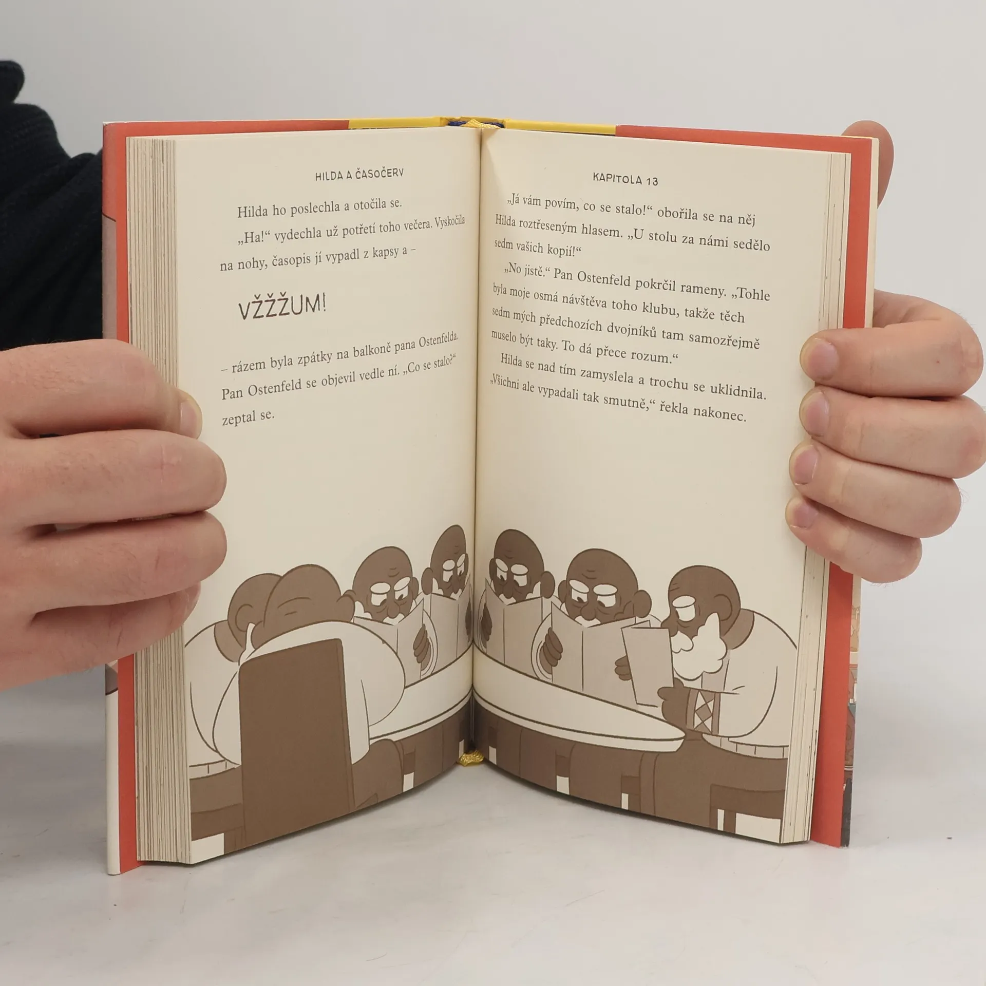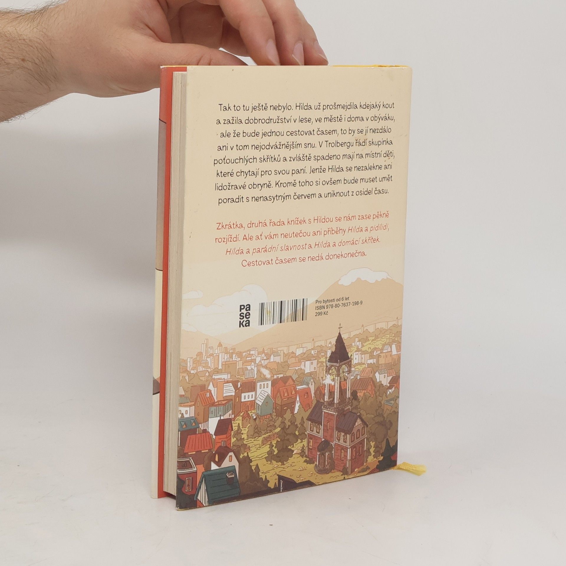 Tak to tu ještě nebylo. Hilda už prošmejdila kdejaký kout a zažila dobrodružství v lese, ve městě i doma v obýváku, ale že bude jednou cestovat časem, to by se jí nezdálo ani v tom nejodvážnějším snu. V Trolbergu řádí skupinka poťouchlých skřítků a zvláště spadeno mají na místní děti, které chytají pro svou paní. Jenže Hilda se nezalekne ani lidožravé obryně. Kromě toho si však bude muset umět poradit s nenasytným červem a uniknout z osidel času. Zkrátka, druhá série knížek s neohroženou Hildou se nám zase pěkně rozjíždí. Ale ať vám neutečou ani příběhy Hilda a pidlidi, Hilda a parádní slavnost a Hilda a domácí skřítek. Cestovat časem se nedá donekonečna.