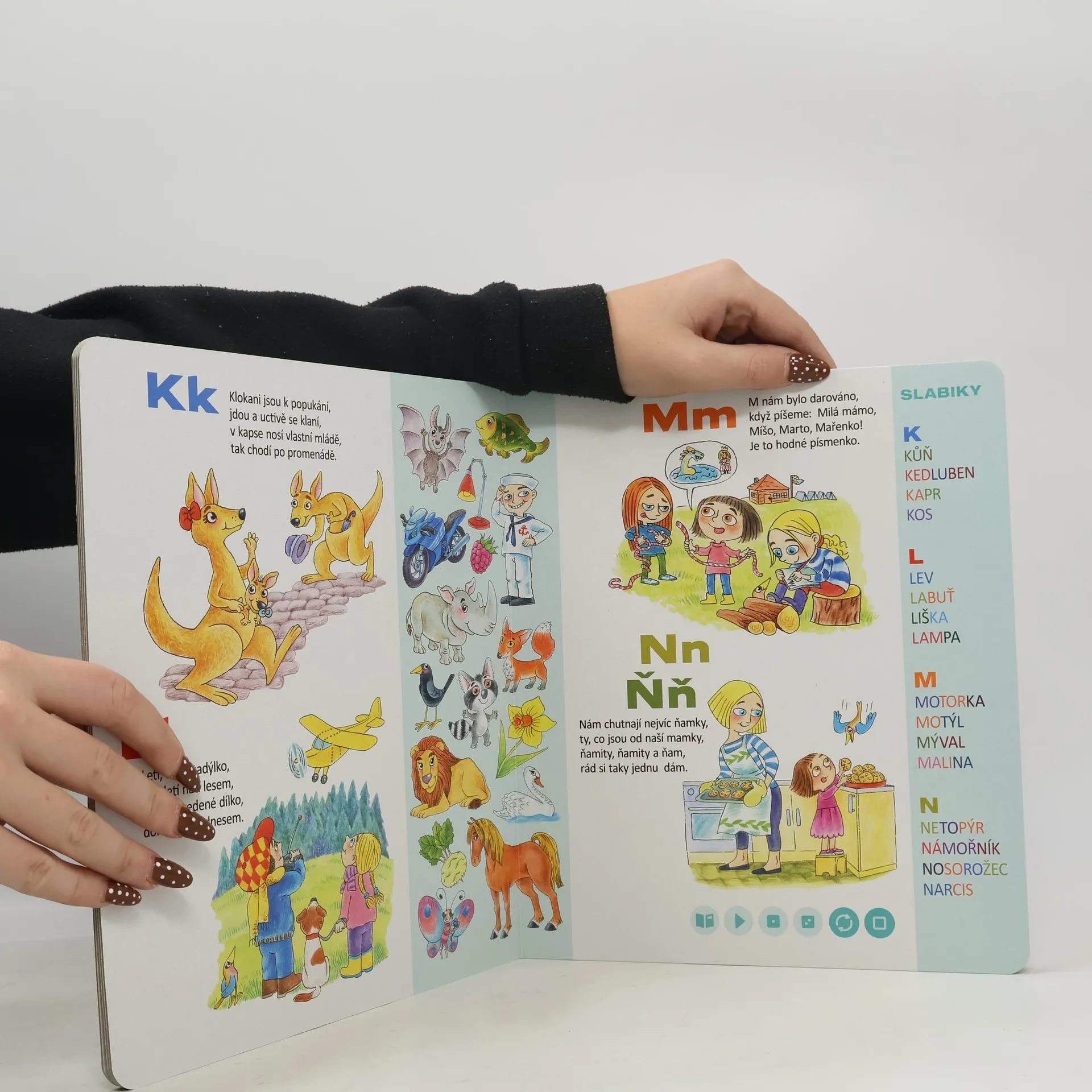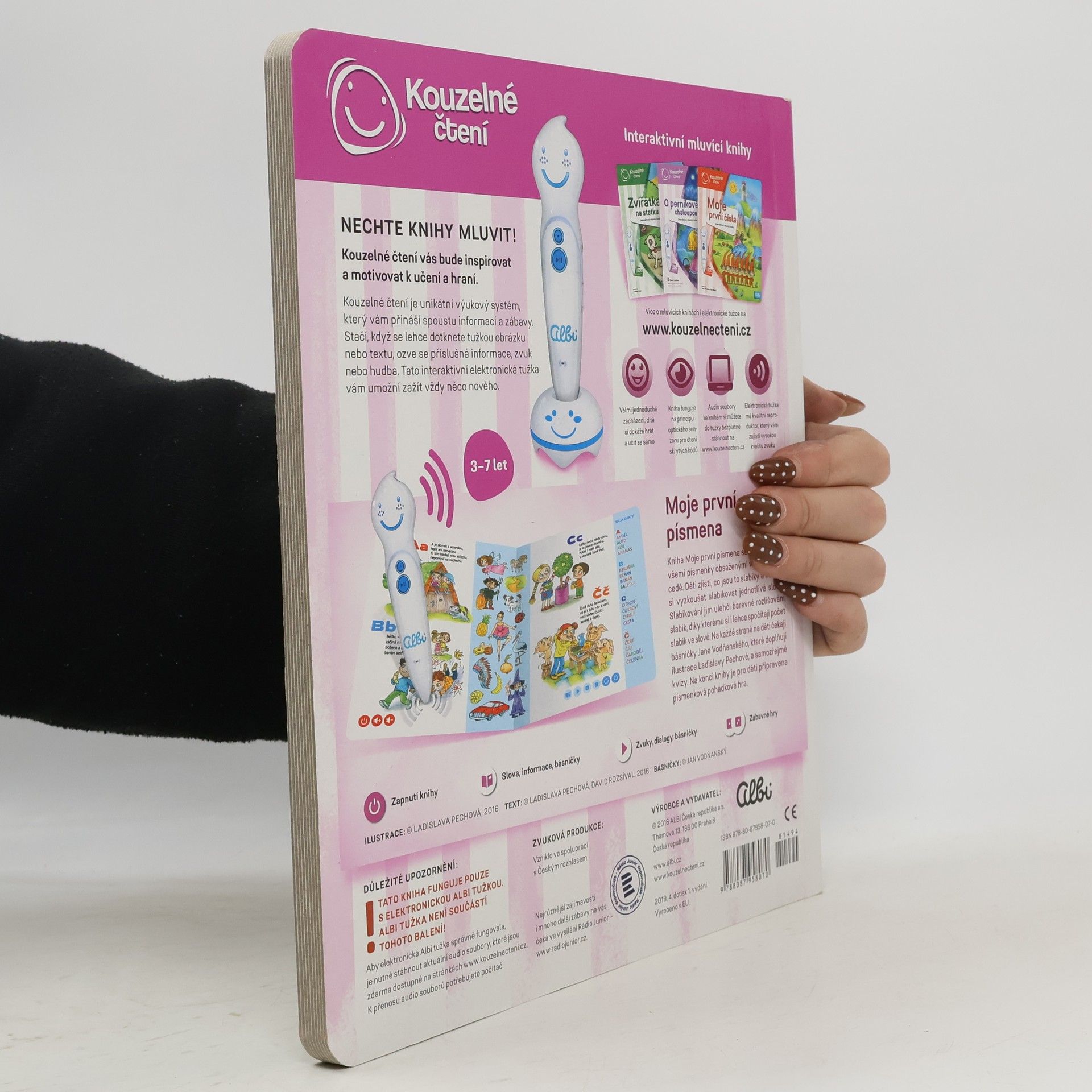 Interaktivní naučná kniha Moje první písmena seznámí děti od 3 let se všemi písmenky české abecedy. Kouzelné čtení tentokrát dětem představí nejen písmena, ale naučí je i slabiky. Slabikování si mohou za pomoci elektronické Albi tužky i vyzkoušet. Jednotlivé slabiky slov jsou barevně rozlišené, pro děti se tím slabikování stane rázem snadnější.