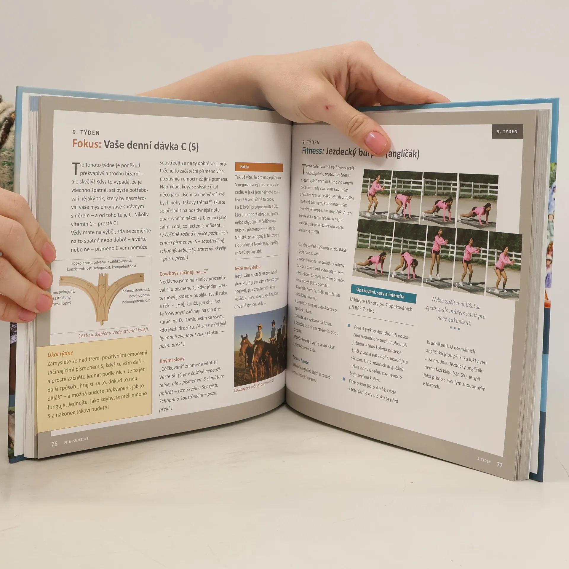 Kouč Daniel Stewart si získal vysoký kredit během 25 let, kdy neúnavně trénoval jezdce po celém světě na všech úrovních, koučoval špičkové jezdce v několika amerických týmech na mistrovství světa, na světových jezdeckých hrách i olympiádách. Je považován za jednoho z nejlepších expertů v oblasti sportovní psychologie, cvičení a výkonnostního sportu. V této knize najdete na každý z 52 týdnů programu jedno cvičení pro tělo a jedno cvičení mentální. Cílem je dosažení takové kondice, díky které budete lépe jezdit na koni bez ohledu na věk, schopnosti a disciplínu. Během 52 týdnů kreativního cross-tréninku a spousty tipů na to, jak přizpůsobit trénink, aby byl v souladu s osobními cíli a životním plánem získáte pozitivní energii a přístup, budete připraveni od hlavy k patě.