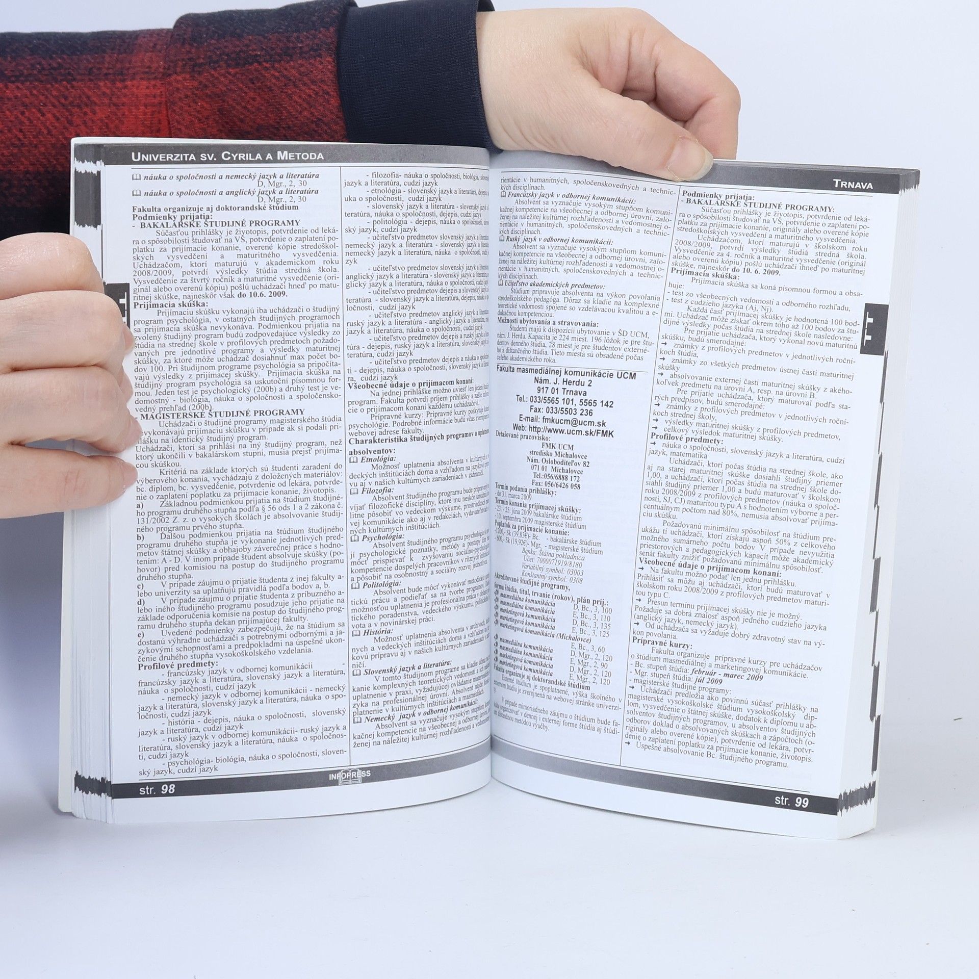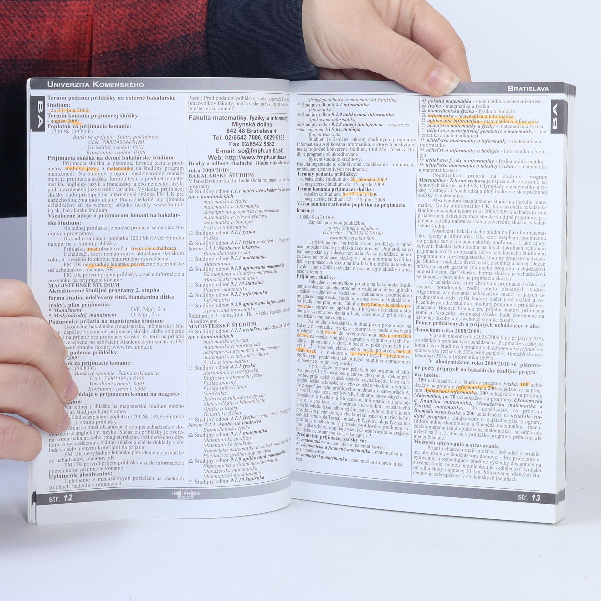 zoznam a charakteristika vysokých škôl v SR štúdijné programy plán prijímania na ak.rok 2009/2010 pomer prihlásených a prijatých v minulom ak.roku prehľad termínov a poplatkov kritériá prijímania na jednotlivé školy možnosti ubytovania a stravovania uplatnenie absolventov dôležité zmeny a novinky