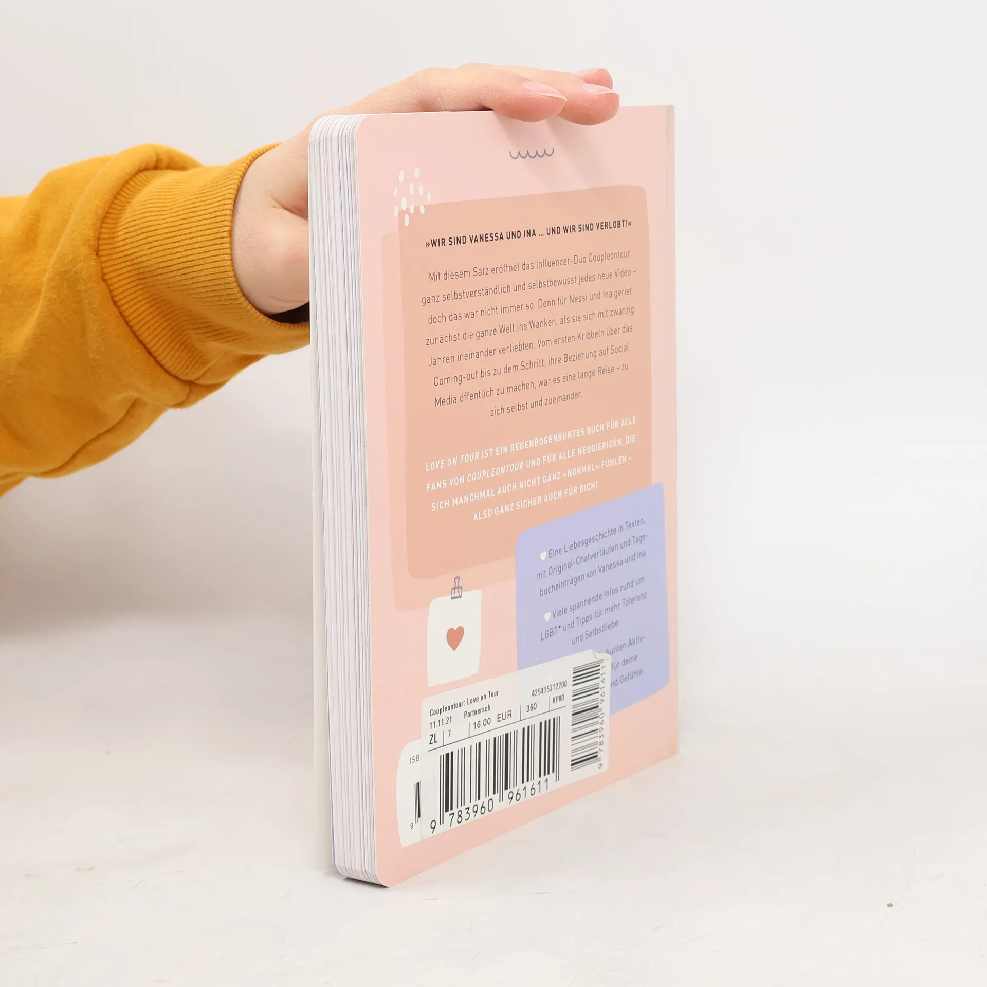 In ihrem Ratgeber "Love on Tour" erzählen Ina und Vanessa dir ihre ganz persönliche Geschichte. Du bist ein Mensch, du bist du und du bist mehr als genug! Das ist alles, was hier zählt. Schon früh merkten die beiden, dass sie sich zum gleichen Geschlecht hingezogen fühlten. Aus Angst hielten sie ihre Beziehung anfangs geheim, mittlerweile ist das Pärchen jedoch verlobt. Sie nehmen dich in ihrem Buch mit auf die Reise zu sich selbst, erzählen vom absurden Gefühl, nicht normal zu sein und davon, sich einzugestehen, in eine Frau verliebt zu sein. Außerdem berichten sie vom großen Glück der Liebe und dem unglaublichen Mut, zu sich selbst zu stehen. Ihre persönliche Geschichte wird von zahlreichen Fakten, Informationen und Tipps rund um die Themen Toleranz, Selbstakzeptanz und Geschlechtsidentität begleitet. Auf Aktivseiten kannst du deine Gedanken und Gefühle mitteilen und dich ganz individuell mit dem Thema auseinandersetzen.