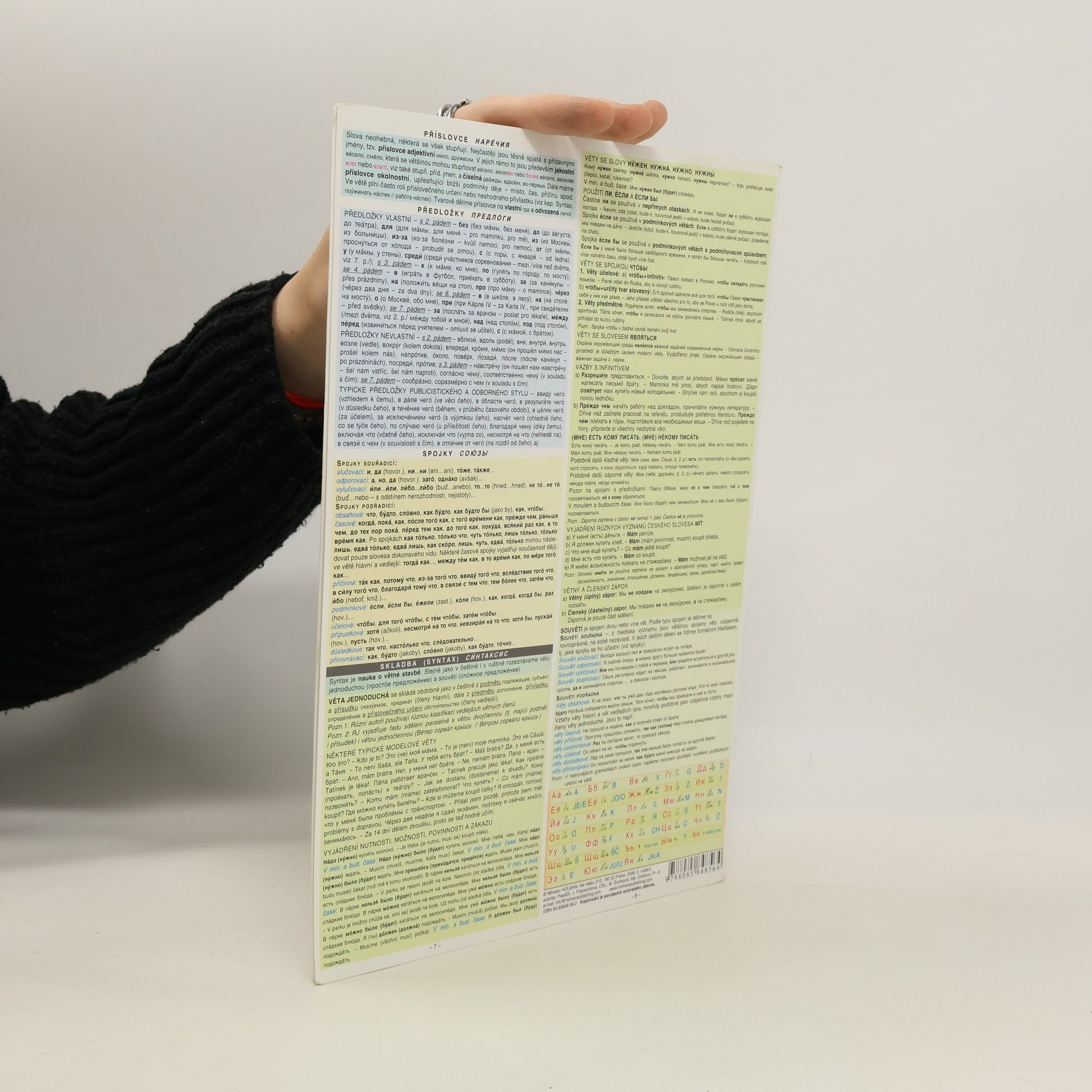 Učební látka v koncentrované podobě – pravopis, tvarosloví, skladba, tabulka azbuky. Přehledné členění, grafická úprava a volba barev umožňuje rychlou orientaci v textu a snadnější zapamatování. Vhodné pro střední a jazykové školy; opakování k maturitě.