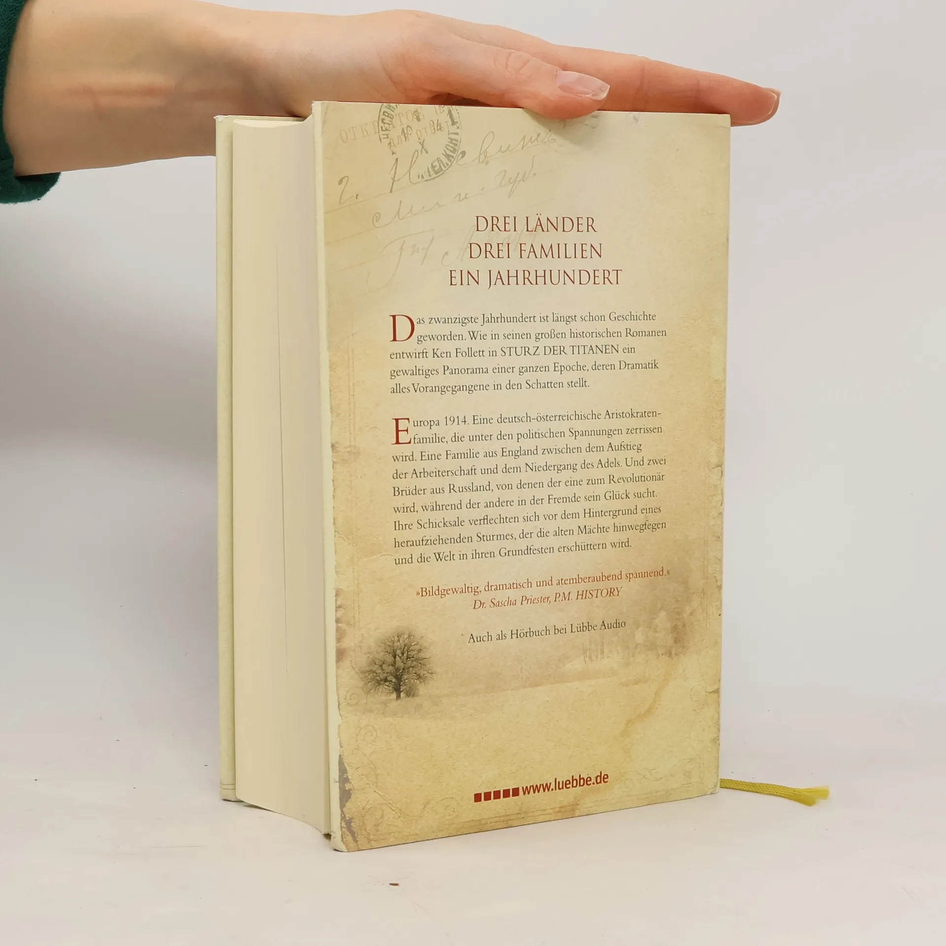 DREI LÄNDER. DREI FAMILIEN. EIN JAHRHUNDERT. Die große Familiensaga von Ken Follett, Autor der Bestseller DIE SÄULEN DER ERDE und DIE TORE DER WELT. 1914. In Europa herrscht Frieden, doch die Weltmächte rüsten zum Krieg. Ein einziger Funke könnte dieses Pulverfass entzünden. Der Schatten des drohenden Konflikts fällt auf die Lebenswege mehrerer Familien aus verschiedenen Ländern, die sich über ein ganzes Jahrhundert immer wieder kreuzen werden. - Ethel Williams, Kind einer Bergmannsfamilie aus Wales, ist Dienerin im Haus von Earl Fitzherbert. Als sie von ihm ein Kind erwartet, wird sie in Schande entlassen. Aber Ethel lässt sich nicht entmutigen und beginnt, während die Männer ins Feld ziehen, für die Rechte der Frauen zu kämpfen.- Walter von Ulrich, Spross einer Adelsfamilie, sehnt sich nach einem demokratischen Deutschland. In London verliebt er sich in die emanzipierte Lady Maud. Am Tag vor der deutschen Kriegserklärung an Russland heiraten sie heimlich. Aber der Krieg reißt die Liebenden auseinander.- Grigori und Lew Peschkow wachsen in St. Petersburg als Waisen auf. Der rechtschaffene Grigori wird zum Revolutionär. Sein leichtfertiger Bruder gelangt in Amerika zu Reichtum. Doch dann muss Lew zur Armee, kehrt als Soldat in die Heimat zurück - und sieht sich seinem Bruder gegenüber.