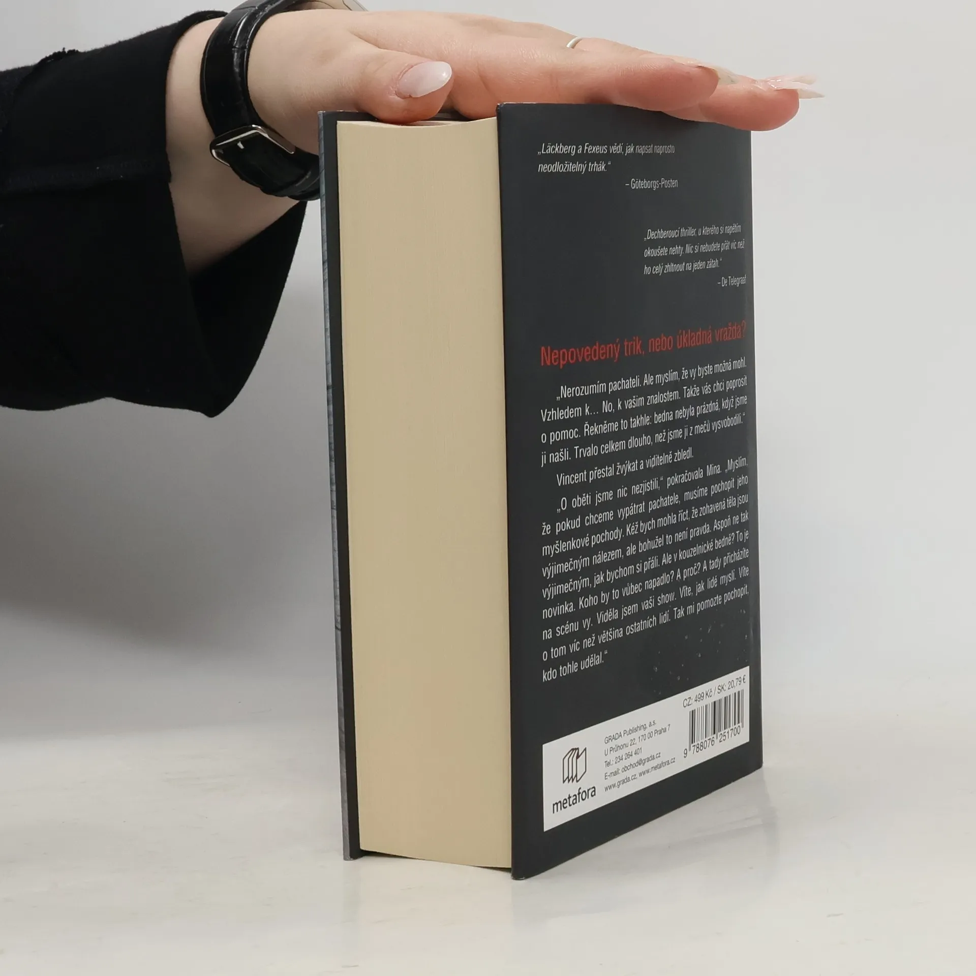 Jediný způsob, jak ho dopadnout, je být o krok před ním Před zábavním parkem ve Stockholmu objeví policie tělo ženy v bedně probodané meči. I když to na první pohled připomíná nepovedený kouzelnický trik, záhy je jasné, že se jedná o mimořádně brutální vraždu. Totožnost oběti však zůstává záhadou a případ se nehýbe z místa. Policistka Mina Dabiriová nakonec nevidí jinou možnost než požádat o pomoc Vincenta Waldera, mentalistu a odborníka na lidskou psychiku i magii. Ačkoli Vincent zpočátku není spoluprací nijak nadšený, probudí se v něm hluboko zasunuté vzpomínky. Spolu s Minou, která rovněž bojuje se svými démony, si během vyšetřování uvědomí, že pronásledují nelítostného sériového vraha. A ten jako by se snažil Vincentovi něco říct. Podaří se jim ho zastavit, než bude obětí víc?
