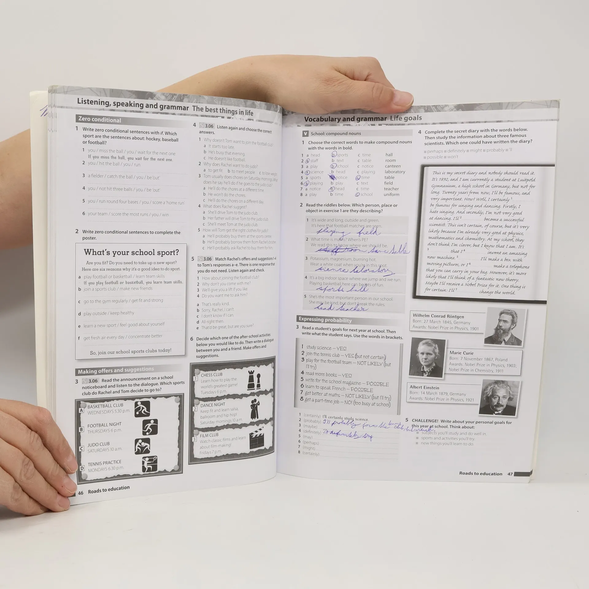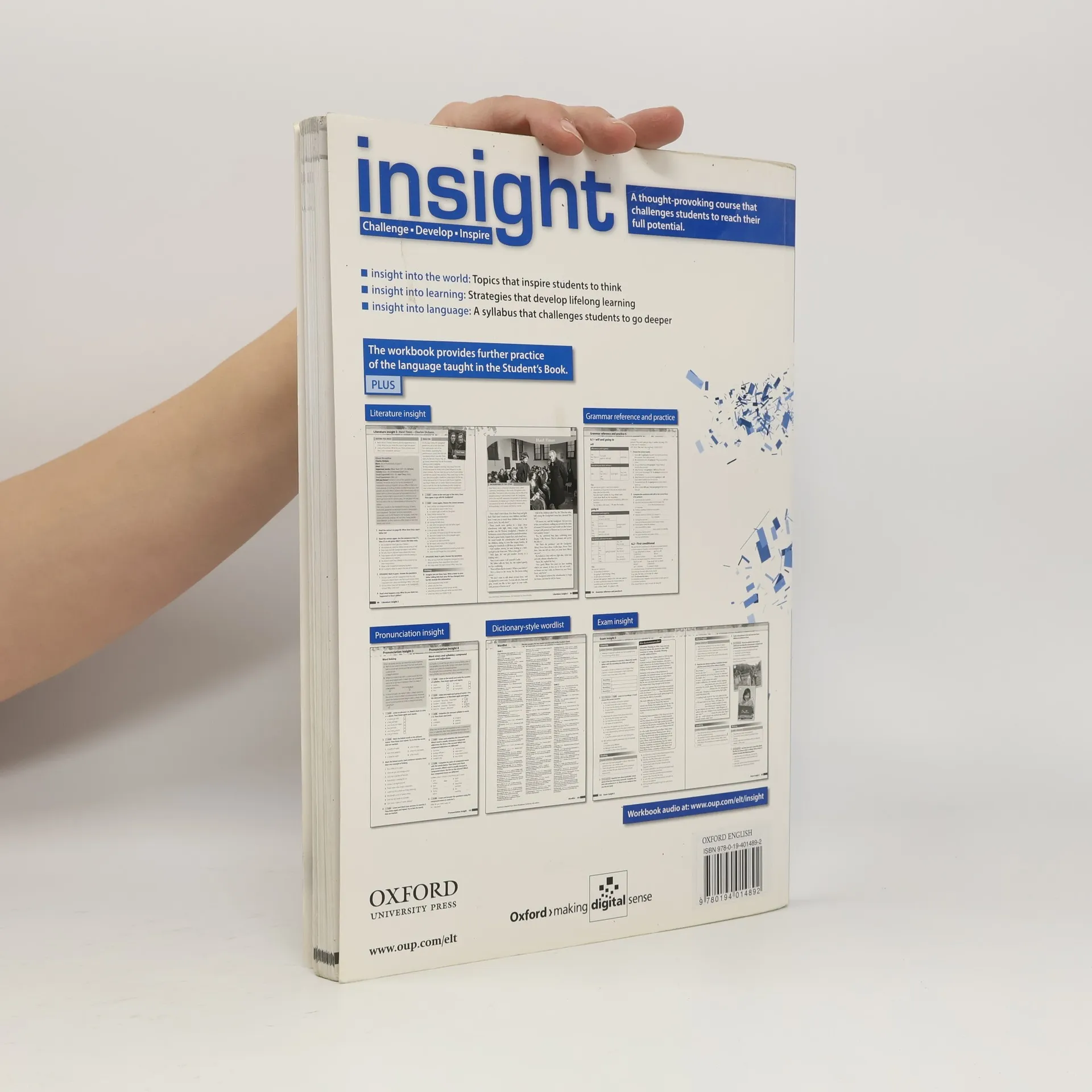 This five-level English course for secondary students is designed to challenge and inspire learners to reach their full potential. It engages students with thought-provoking topics and information-rich texts that encourage critical thinking about the world. The course emphasizes skill development and fosters autonomous learning habits, equipping students with a deeper understanding of language. It goes beyond vocabulary meaning to include the rules governing its use, promoting confident communication. Key features include thought-provoking topics that spark classroom discussions, a systematic vocabulary syllabus with Vocabulary insight pages and a comprehensive Vocabulary bank. Culture pages in each unit, along with related DVD material, enhance students' understanding of English-speaking countries' customs and history. Optional literature-based lessons in the workbook enrich the curriculum with classic English literature. All school-leaving exam topics are covered, with exam-like tasks integrated throughout to prepare students effectively. The workbook offers additional language practice and resources, including Literature insight, Pronunciation insight, and Exam insight sections. This course is designed to motivate students, develop their skills, and inspire a lifelong love of learning.