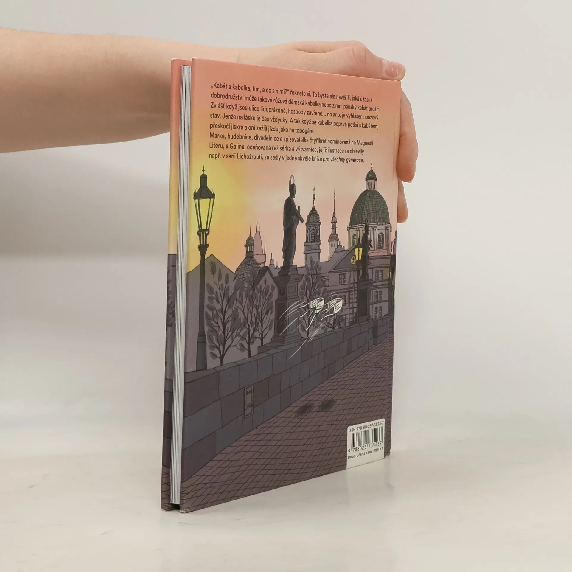 Fantazijní příběh odehrávající se v Praze za koronavirové pandemie má neobvyklé hrdiny: kabát a kabelku. Jsou to obyčejné věci, ale jejich život je jako jízda v tobogánu, plný zvratů i osudových náhod. Poprvé se ti dva potkají v autobuse. Kabelka, vášnivá čtenářka, jede do knihovny půjčit si knihy a kabát pospíchá ke krejčímu: potřebuje přistehovat knoflíky a zalátat roztrženou kapsu. Podruhé se jejich cesty zkříží, když kabelka uklouzne na chodníku a kabát jí pomůže vstát. A zase si jdou po svém, jenže tentokrát je něco jinak. Že by přeskočila jiskra? Oba ještě čeká řada dobrodružství. Kabát se dostane do rukou rybáře a ten ho zapomene v hospodě. Večer ale vláda vyhlásí nouzový stav a všechny hospody zůstanou zavřené. Co jen si kabát v ztemnělém lokálu počne? I kabelka prožívá rozličné štrapáce. Setkají se ti dva potřetí? Vydání knihy podpořilo Ministerstvo kultury České republiky.