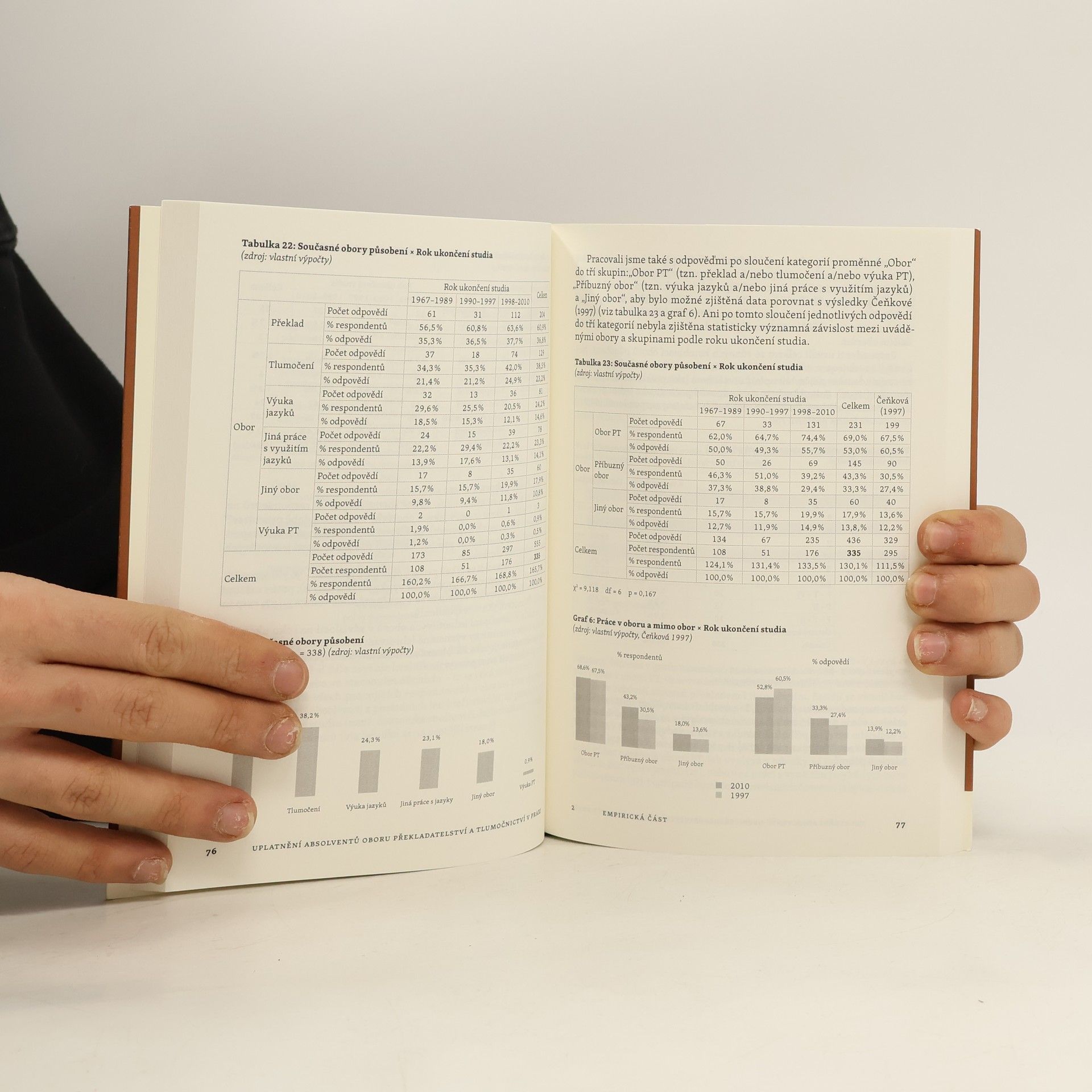 Práce mapuje profesní uplatnění absolventů magisterského oboru překladatelství a tlumočnictví Ústavu translatologie Filozofické fakulty Univerzity Karlovy v Praze (v dřívějších letech realizovaného na Katedře překladatelství a tlumočnictví Filozofické fakulty Univerzity Karlovy a na Universitě 17. listopadu). Navazuje na průzkum uplatnění absolventů uvedených ústavů uskutečněný v roce 1997 (Čeňková). Teoretická část práce pojednává o uplatnění z hlediska vzdělávací politiky i z hlediska translatologie. Popisuje také trendy v odvětví jazykových služeb a problémy trhu s překlady a tlumočením s důrazem na české prostředí. Empirická část představuje výsledky dotazníkového šetření zaměřeného na aktuální postavení absolventů oboru překladatelství a tlumočnictví z let 1967–2010 na pracovním trhu. Zaměřuje se na průběh jejich profesní dráhy, na jejich přechod na pracovní trh po ukončení studia a na některé aspekty práce překladatelů a tlumočníků na volné noze. Všímá si rovněž hodnocení studia a okrajově také vnímání překladatelské a tlumočnické profese u absolventů.