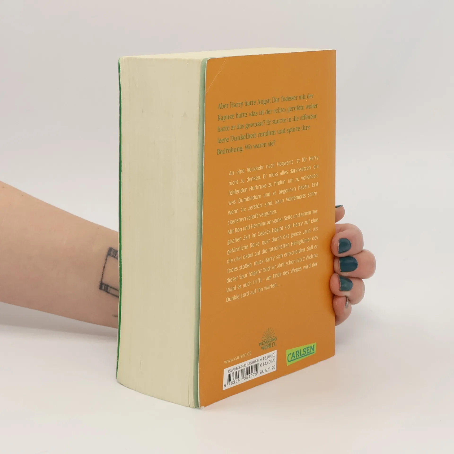 An eine Rückkehr nach Hogwarts ist für Harry nicht zu denken. Er muss alles daransetzen, die übrigen Horkruxe zu finden. Erst wenn sie zerstört sind, kann Voldemorts Schreckensherrschaft vergehen. Mit Ron und Hermine an seiner Seite begibt sich Harry auf eine gefährliche Reise durch das ganze Land. Als die drei auf die rätselhaften Heiligtümer des Todes stoßen, muss Harry sich entscheiden. Soll er dieser Spur folgen? Doch welche Wahl er auch trifft – am Ende des Weges wird der Dunkle Lord auf ihn warten … Dies ist der siebte und letzte Band der international erfolgreichen Harry-Potter-Serie, die Generationen geprägt hat. Alle Bände der Serie: Harry Potter und der Stein der WeisenHarry Potter und die Kammer des SchreckensHarry Potter und der Gefangene von AskabanHarry Potter und der FeuerkelchHarry Potter und der Orden des PhönixHarry Potter und der HalbblutprinzHarry Potter und die Heiligtümer des Todes Die Harry-Potter-Serie ist abgeschlossen.