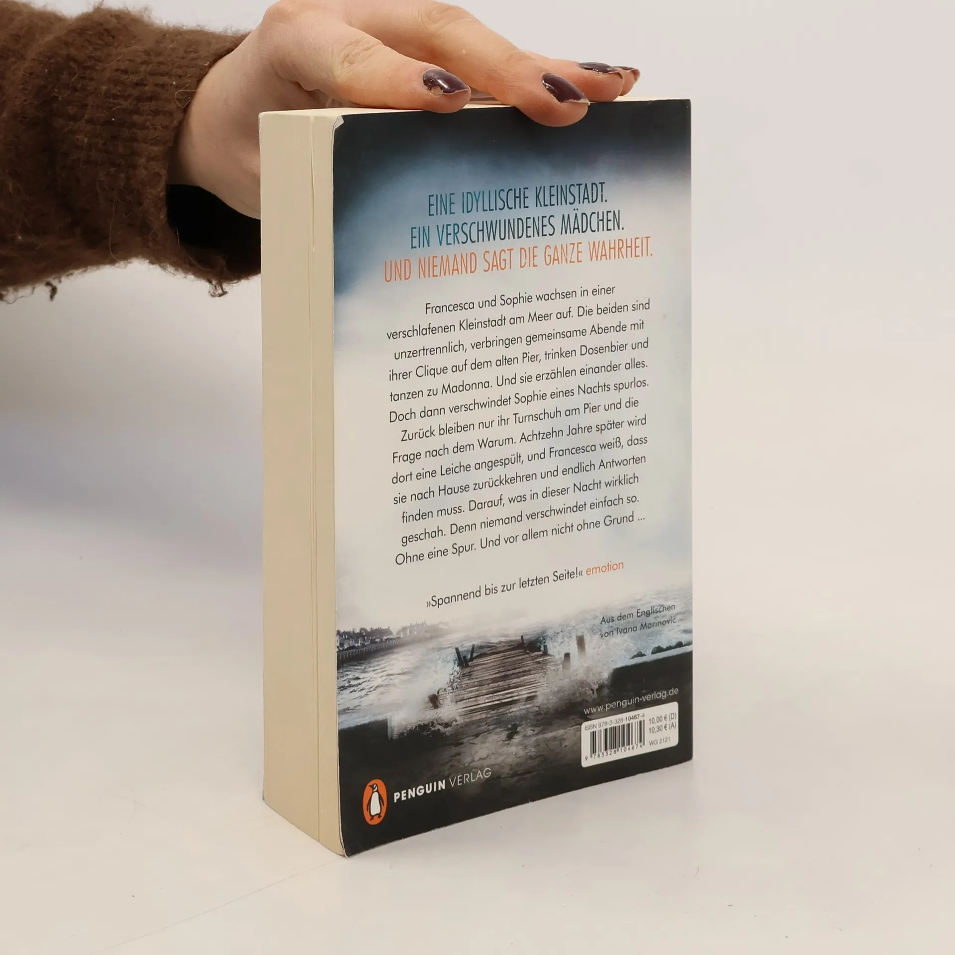 Eine raue Küstenlandschaft und ein fast vergessener Mordfall sorgen für Spannung bis zur letzten Seite. Mit ihrem ersten Thriller schaffte es Claire Douglas auch in Deutschland sofort auf der Bestsellerliste. Ein Ort voller Erinnerungen. Ein Ort voller Lügen. Francesca und Sophie wachsen in einer verschlafenen Kleinstadt am Meer auf. Die beiden sind unzertrennlich, verbringen gemeinsame Abende mit ihrer Clique auf dem alten Pier, trinken Dosenbier und tanzen zu Madonna. Und sie erzählen einander alles. Doch dann verschwindet Sophie eines Nachts spurlos. Zurück bleiben nur ihr Turnschuh am Pier und die Frage nach dem Warum. Achtzehn Jahre später wird dort eine Leiche angespült, und Francesca weiß, dass sie nach Hause zurückkehren und endlich Antworten finden muss. Darauf, was in dieser Nacht wirklich geschah. Denn niemand verschwindet einfach so. Ohne eine Spur. Und vor allem nicht ohne Grund ...
