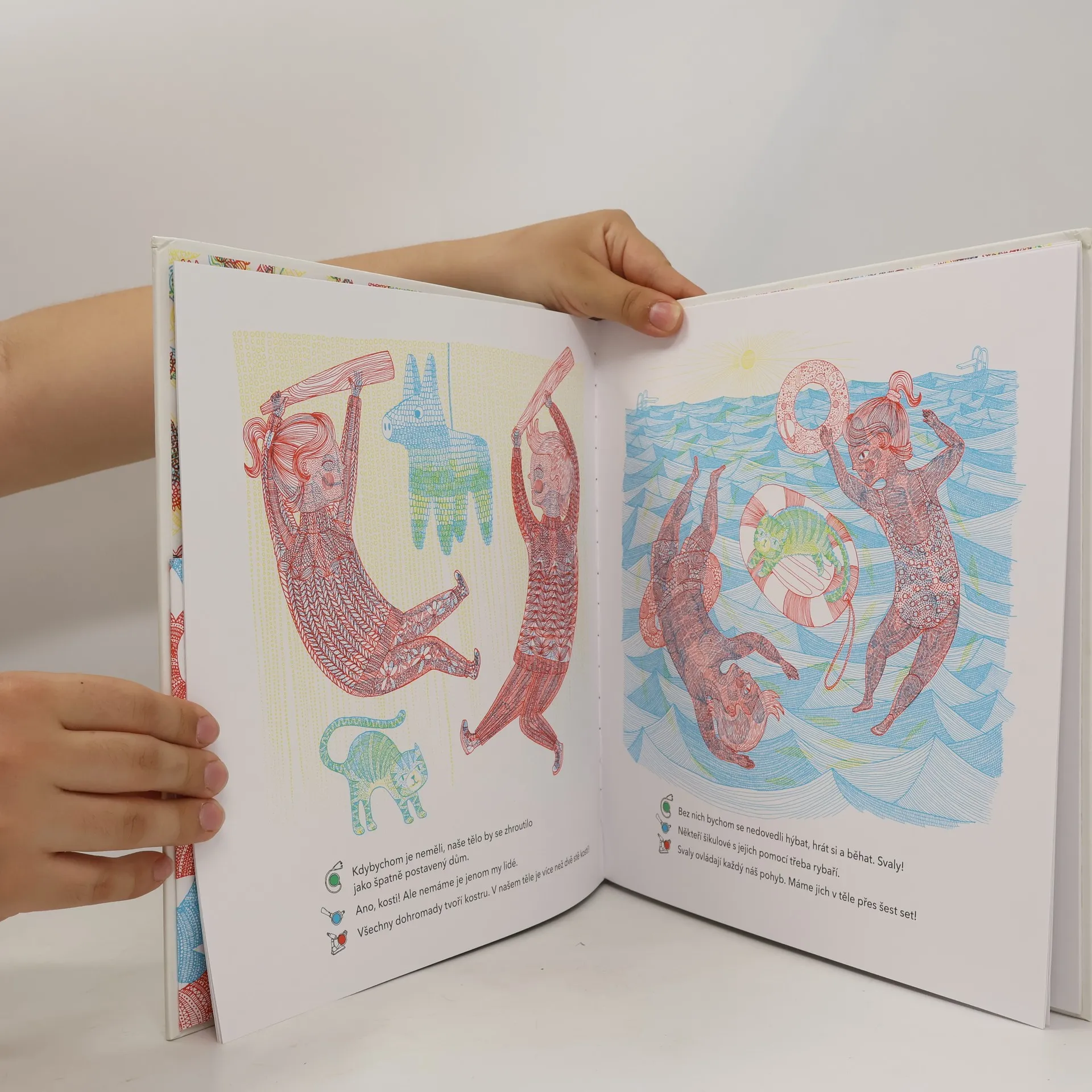 Co se skrývá v našem těle funguje na principu prohlížení obrázků přes barevné lupy (jsou ke knize přibaleny), které Vám odkrývají skryté kresby.