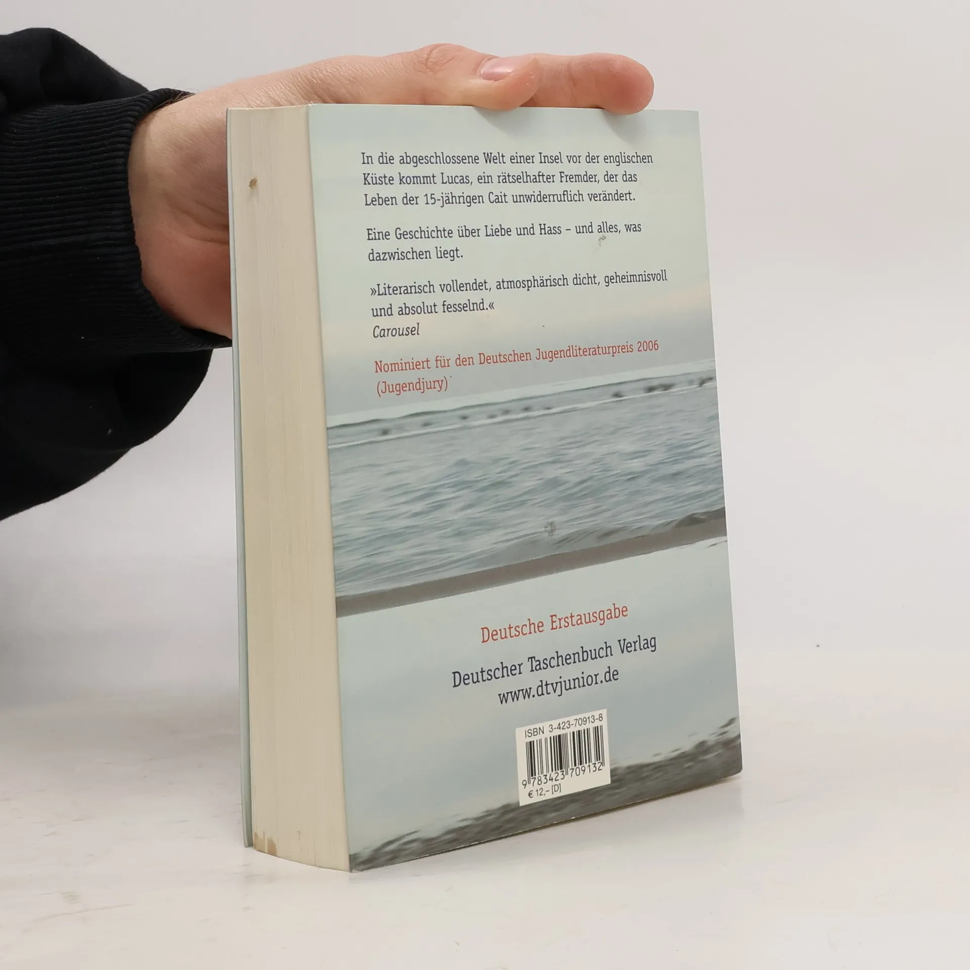 Eine Geschichte über Liebe und Hass - und alles, was dazwischen liegt. Im Rückblick schreibt Caitlin über den letzten Sommer, als Lucas auf ihre Insel kam und ihre Kindheitswelt zerbrach. Von Anfang an ist sie fasziniert von dem geheimnisvollen Fremden, den die Inselbewohner misstrauisch beäugen. Caitlin freundet sich mit Lucas an und verliebt sich in ihn, während die Erwachsenen ihm alle möglichen Vergehen unterstellen und die Jugendclique ihn verspottet. Auch Caitlin wird zur Zielscheibe des Hasses und gerät in Gefahr. Die Situation eskaliert, als Lucas fälschlicherweise beschuldigt wird, ein kleines Mädchen belästigt zu haben, das er in Wirklichkeit vor dem Ertrinken gerettet hat. Als auf der Insel eine junge Frau ermordet aufgefunden wird, wird Caitlin klar, dass eine gnadenlose Hetzjagd auf Lucas bevorsteht. Hat sie die Möglichkeit, ihn zu schützen? Das Werk wurde mit dem Buxtehuder Bullen und dem Deutschen Jugendliteraturpreis 2006 (Jugendjury) ausgezeichnet und war für den Gustav-Heinemann-Friedenspreis nominiert. Es steht auf der Empfehlungsliste der Besten 7 (Deutschlandfunk/Focus) im Juni 2005 und erhielt die Auszeichnung Eule des Monats Juli 2005 vom Bulletin für Kinder- und Jugendliteratur.