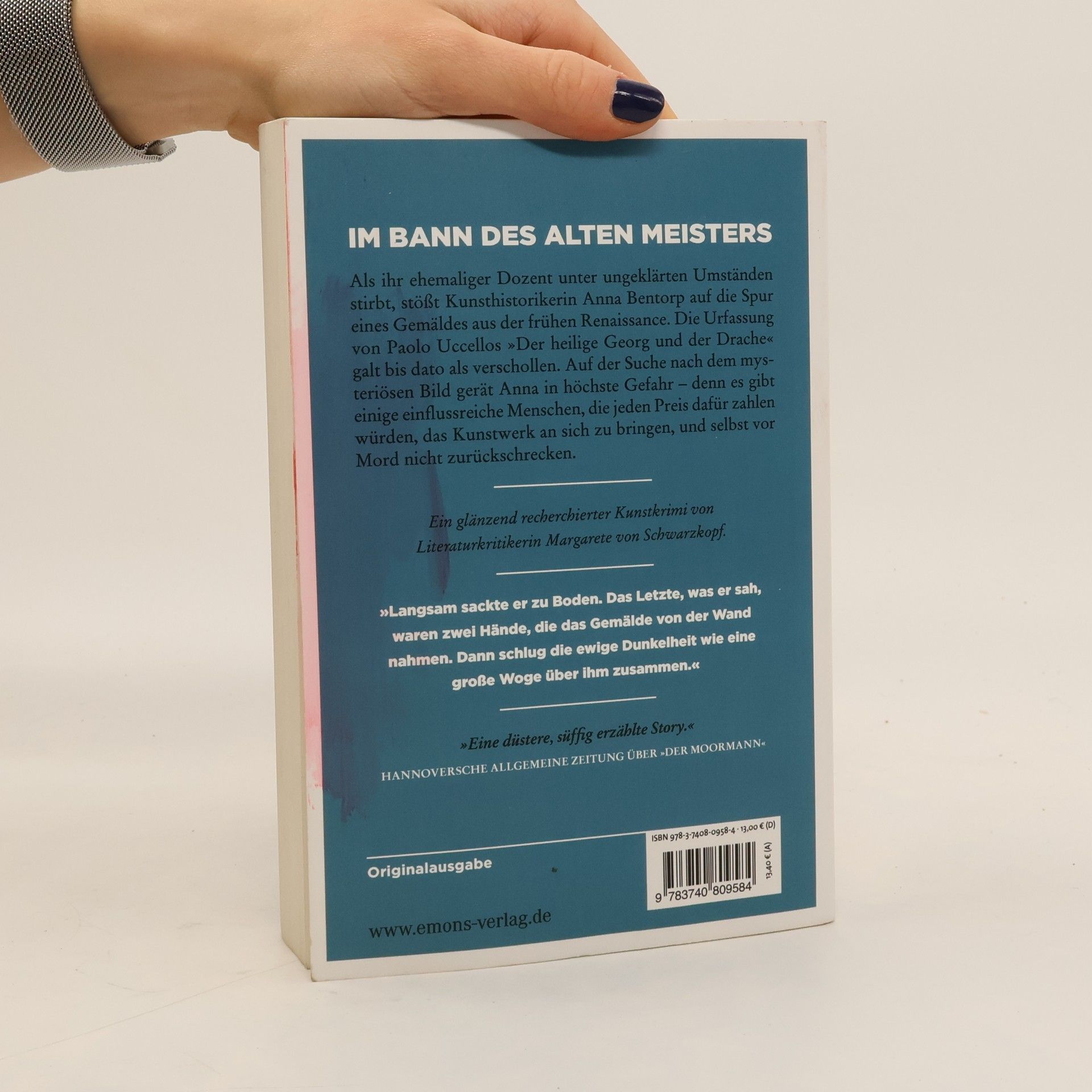 Ein originelles Ermittlergespann auf der Jagd nach einem verschollenen Meisterwerk. Als ihr ehemaliger Dozent unter ungeklärten Umständen stirbt, stößt Kunsthistorikerin Anna Bentorp auf die Spur eines Gemäldes aus der frühen Renaissance. Die Urfassung von Paolo Uccellos »Der heilige Georg und der Drache« galt bis dato als verschollen. Auf der Suche nach dem mysteriösen Bild gerät Anna in höchste Gefahr – denn es gibt einige einflussreiche Menschen, die jeden Preis dafür zahlen würden, das Kunstwerk an sich zu bringen, und selbst vor Mord nicht zurückschrecken.