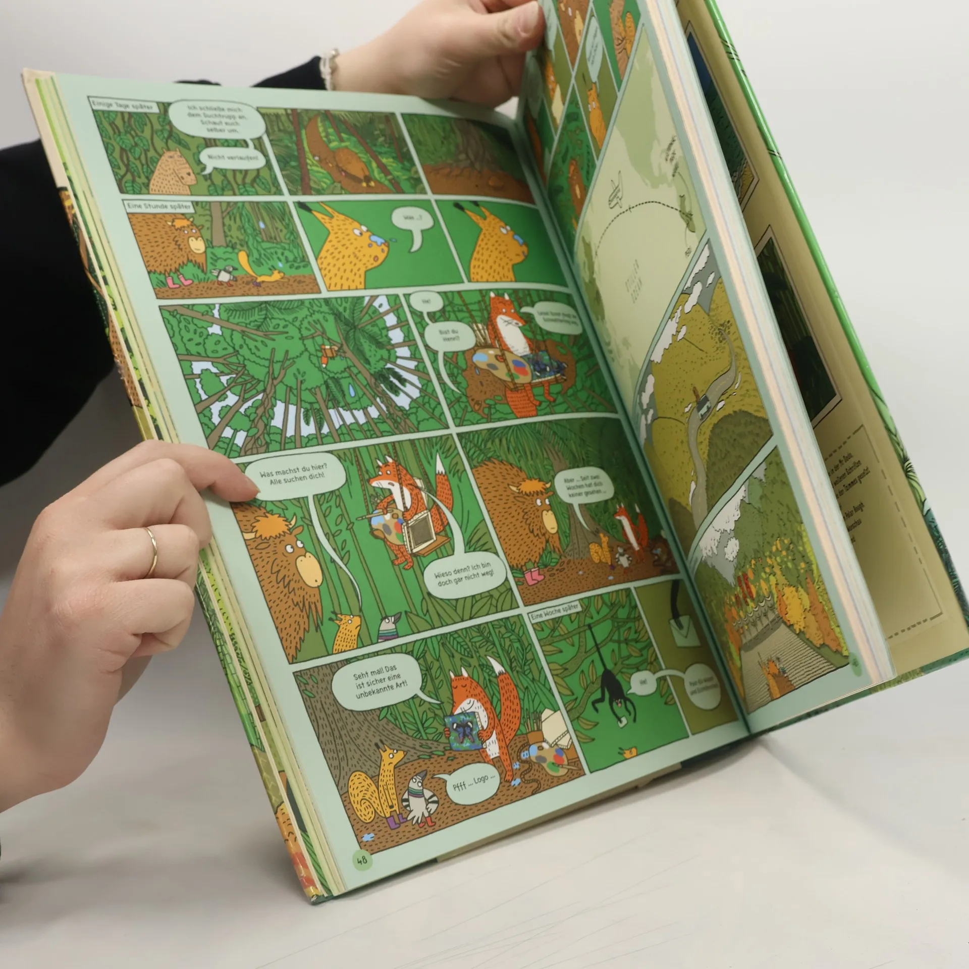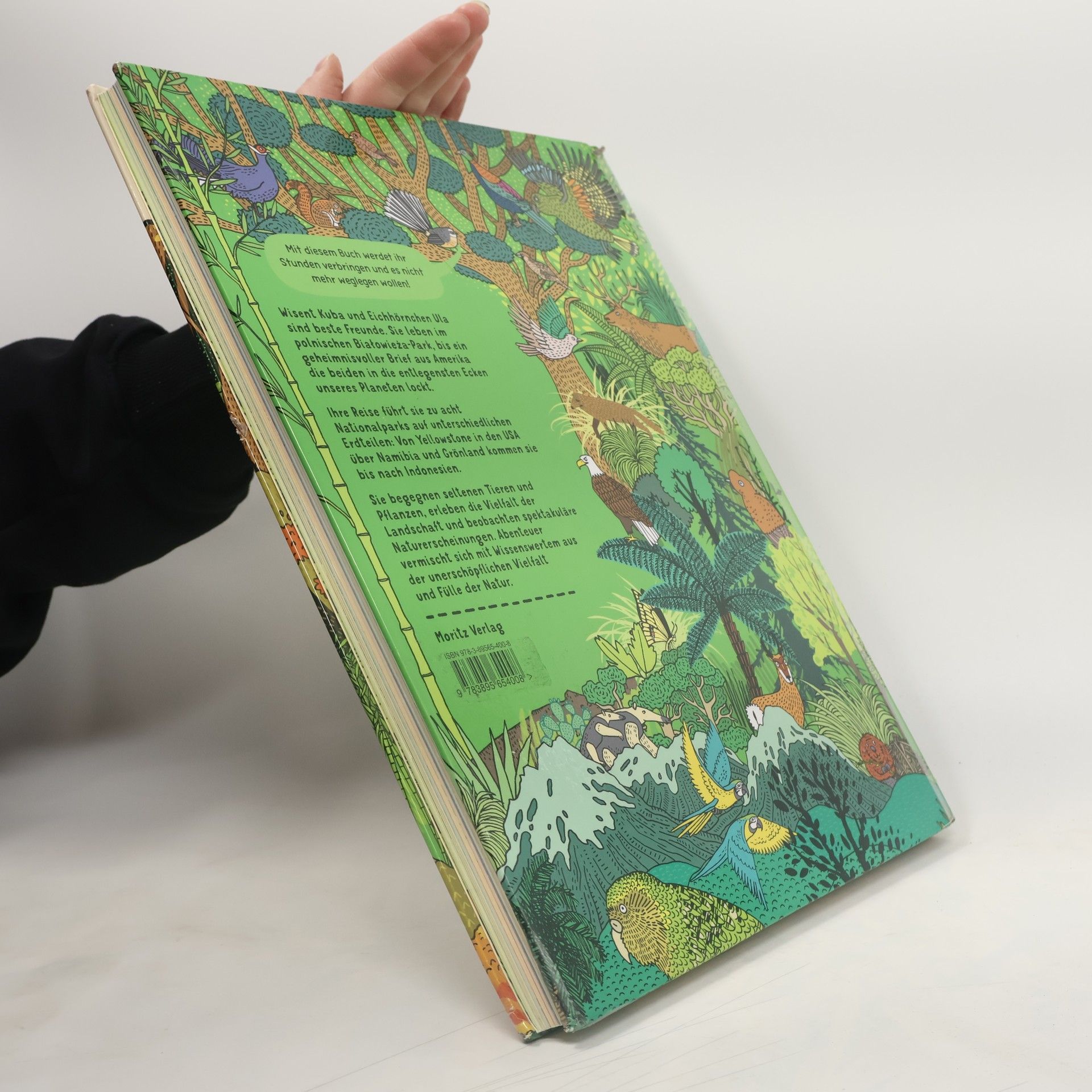 Der Wunsch, die Umwelt zu bewahren, steht am Anfang eines jeden Nationalparks. Ausgehend vom polnischen Białowieza-Park wird acht von ihnen ein Besuch abgestattet – eine Reise über die Kontinente beginnt. Dabei folgen wir dem Wisent Kuba und dem Eichhörnchen Ula zu sieben Parks von Peru über China, Namibia, Grönland, Indonesien, Neuseeland und Wyoming. Eine ungeheure Themenvielfalt zeigt Blattschneiderameisen und Komodowarane, erklärt Polarnacht und Permafrost, spricht die Erosion und das Überleben in der Wüste an. Zusammengehalten wird das Buch durch eine Comicgeschichte, die auch WenigleserInnen bei der Stange hält. So ist dem polnischen Grafikerpaar nach »Alle Welt. Das Landkartenbuch« und »Unter der Erde/Tief im Wasser« wieder ein beeindruckendes Buch im Großformat gelungen, mit dem sie auf ihrer Suche nach der optimalen Darbietungsform von Kindersachbüchern noch ein Stück weiter vorangekommen sind. Und nicht nur das: Zum ersten Mal gibt es ergänzend zu einem ihrer Bücher einen kurzen Animationsfilm: Darin erfahren Kuba und Ula, wie ein natürlicher Waldbrand entstehen kann und was dieser für Tiere und Pflanzen bedeutet. https://youtu.be/r5Z4hoke8MY