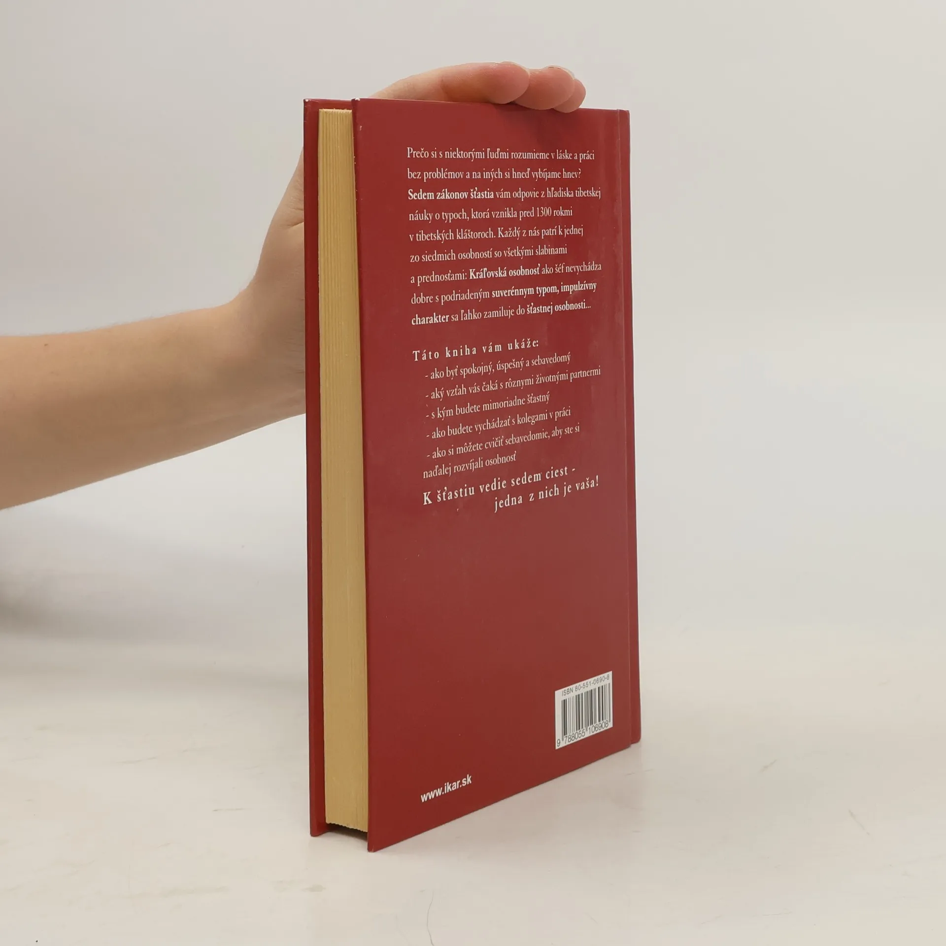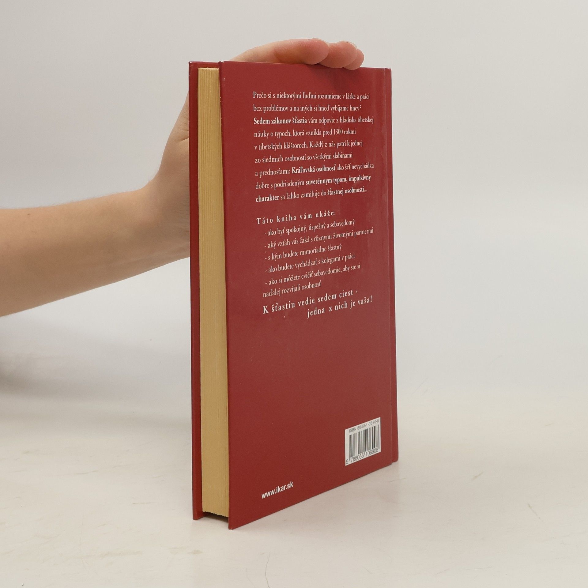 Sedem zákonov šťastia vám odpovie z hľadiska tibetskej náuky o typoch, ktorá vznikla pred 1300 rokmi v tibetských kláštoroch. Každý z nás patrí k jednej zo siedmich osobností so všetkými slabinami a prednosťami: Kráľovská osobnosť ako šéf nevychádza dobre s podriadeným suverénnym typom,impulzívny charakter sa ľahko zamiluje do šťastnej osobnosti... Táto kniha vám ukáže: - ako byť spokojný, úspešný a sebavedomý - aký vzťah vás čaká s rôznymi životnými partnermi - s kým budete mimoriadne šťastný - ako budete vychádzať s kolegami v práci - ako si môžete cvičiť sebavedomie, aby ste si naďale rozvíjali osobnosť