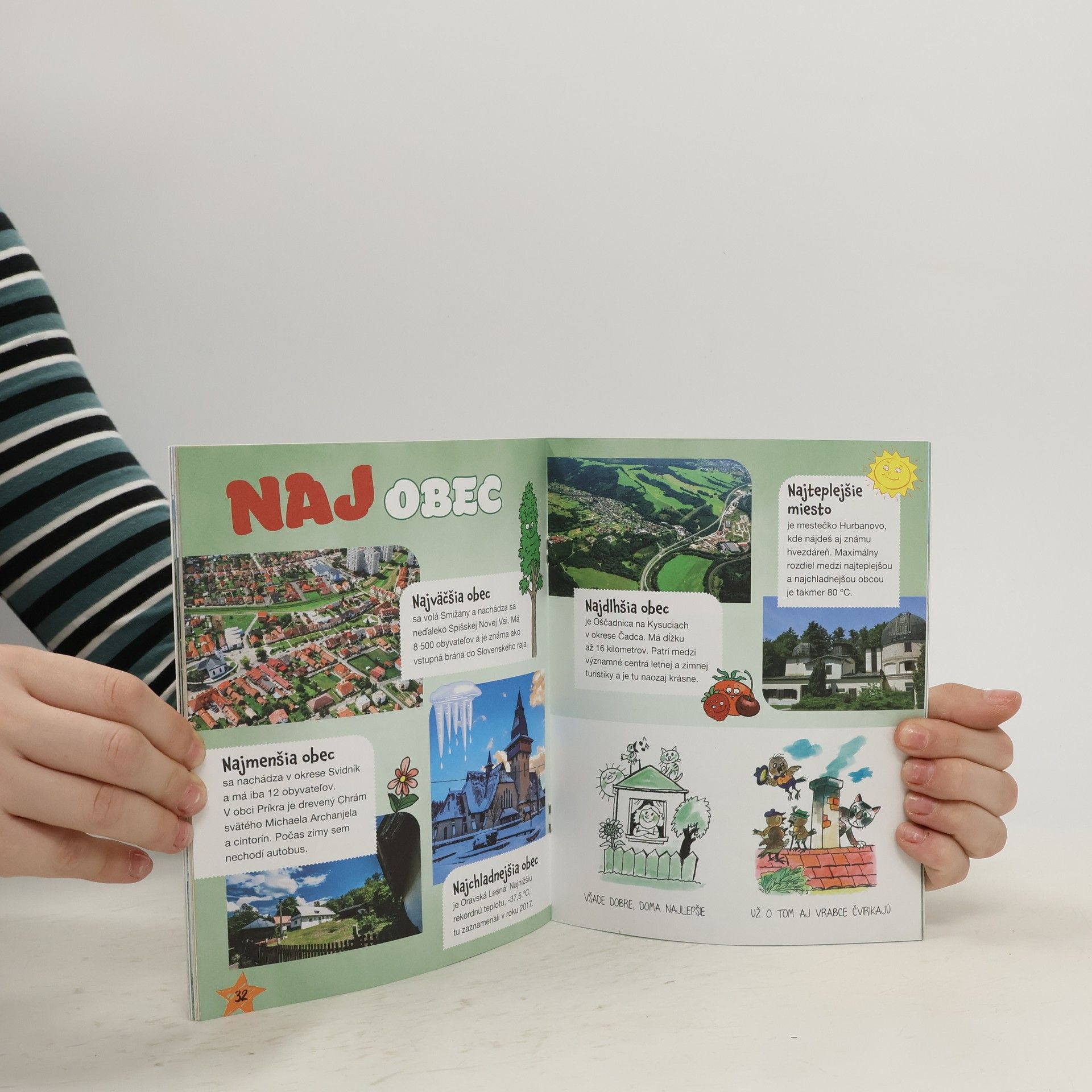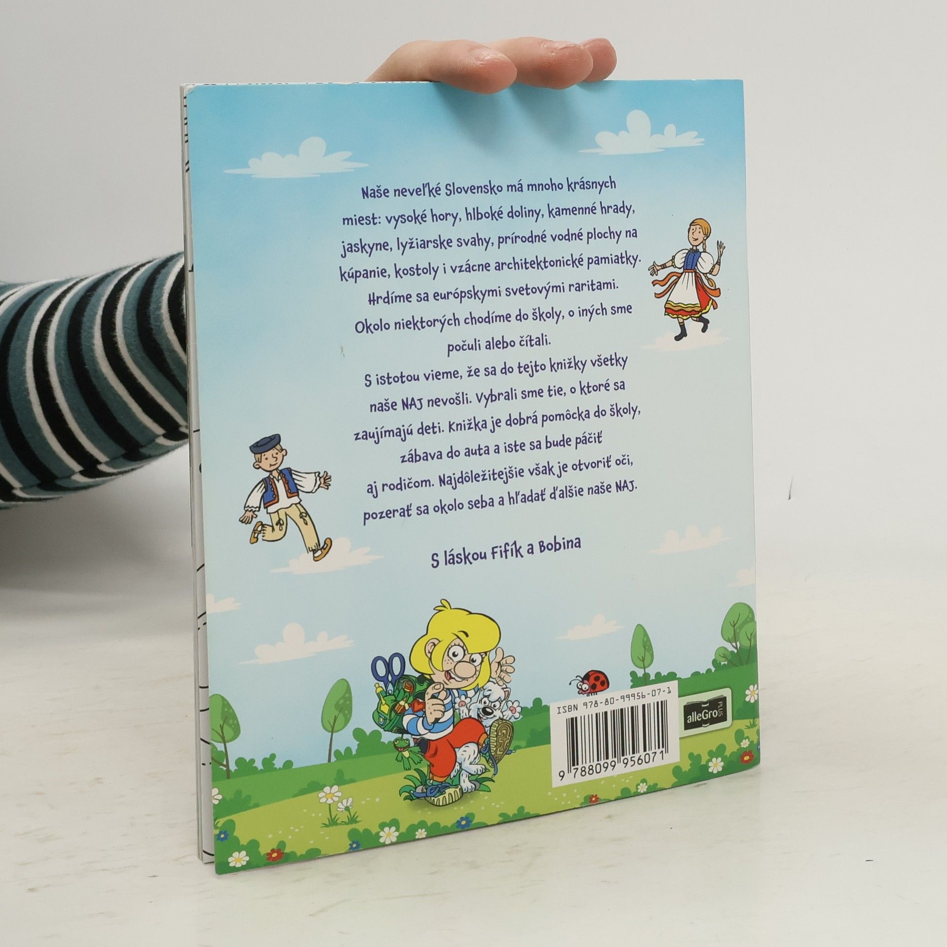 Naše neveľké Slovensko má mnoho krásnych miest: vysoké hory, hlboké doliny, ka-menné hrady, jaskyne, lyžiarske svahy, prírodné plochy na kúpanie, kostoly i vzácne architektonické pamiatky. Hrdíme sa európskymi svetovými raritami. Okolo niekto-rých chodíme do školy, o iných sme počuli alebo čítali. S istotou viem, že sa do tejto knižky všetky naše NAJ nevošli. Vybrali sme tie, o ktoré sa zaujímajú deti. Knižka je dobrá pomôcka do školy, zábava do auta a iste sa bude páčiť aj rodičom. Najdôleži-tejšie je otvoriť oči, pozerať sa okolo seba a hľadať naše ďalšie NAJ. S láskou Fifík a Bobina Pre deti 8+