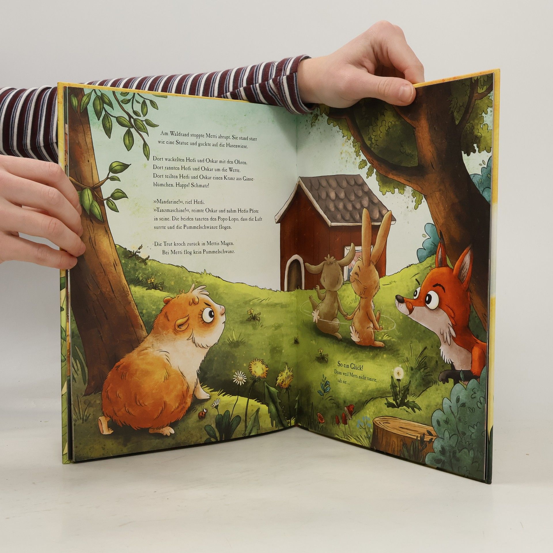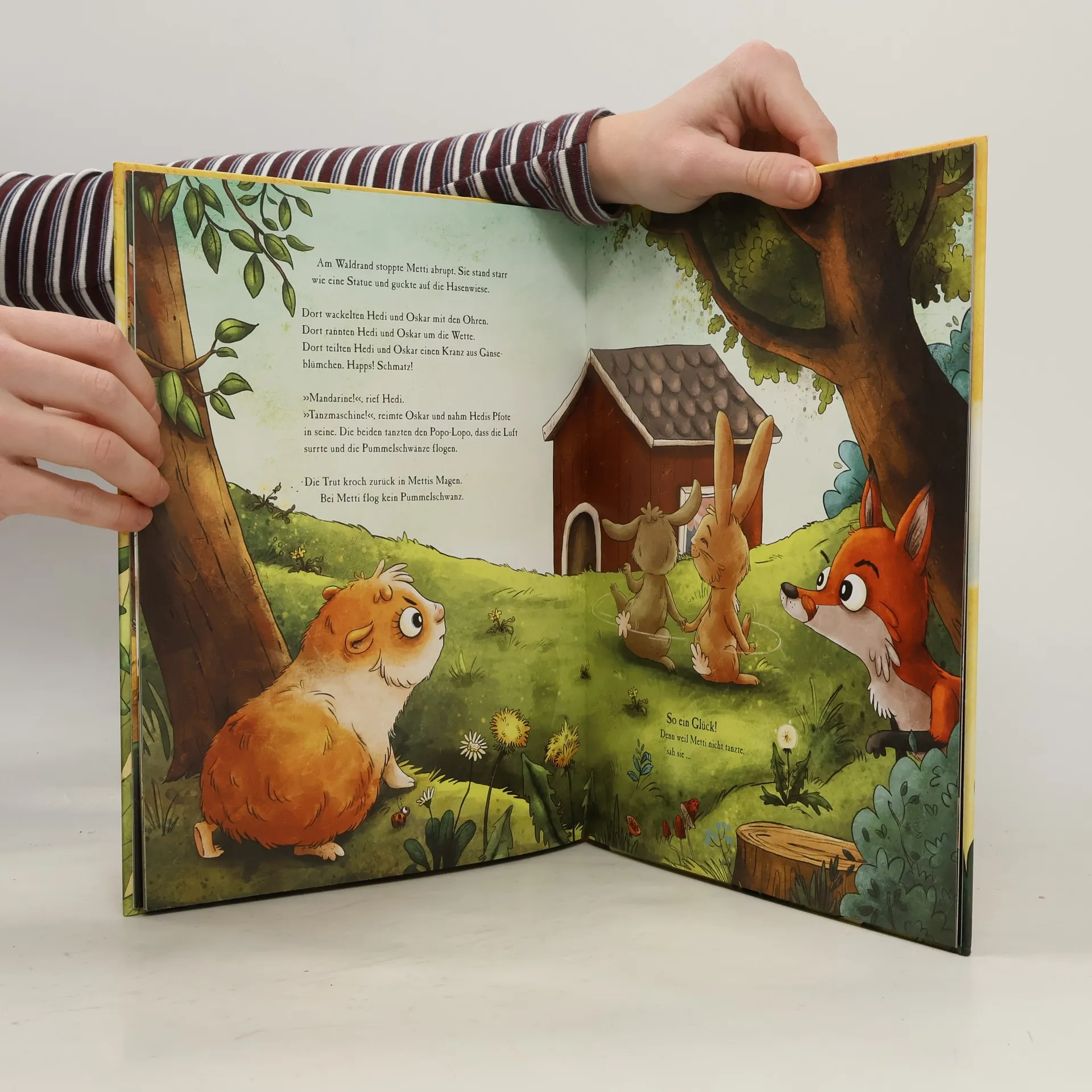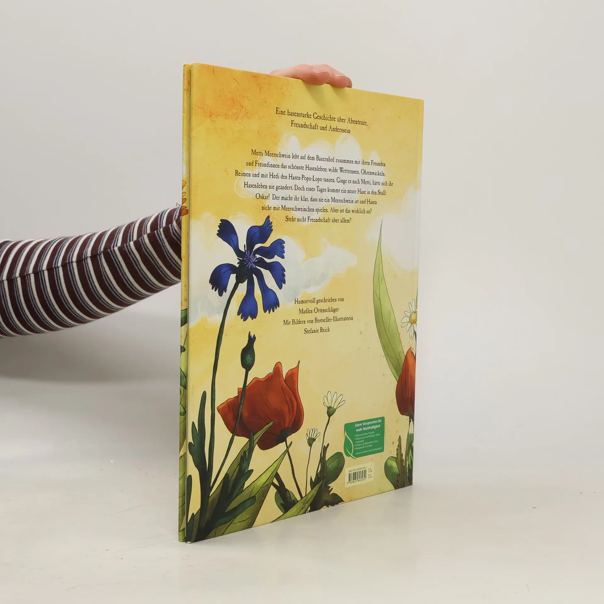In ihrem Bilderbuchdebut erzählt Madlen Ottenschläger die lustige Geschichte von Metti Meerschwein, die im Hasenstall auf dem Bauernhof zusammen mit ihren Freunden und Freundinnen das schönste Hasenleben lebt: wilde Wettrennen, Ohrenwackeln und mit Hedi den Hasen-Popo-Lopo tanzen. Ginge es nach Metti, hätte sich ihr Hasenleben nie geändert. Doch eines Tages kommt ein neuer Hase in den Stall: Oskar! Der macht ihr klar, dass sie ein Meerschwein ist und Hasen nicht mit Meerschweinchen spielen. Aber ist das wirklich so? Steht nicht Freundschaft über allem?