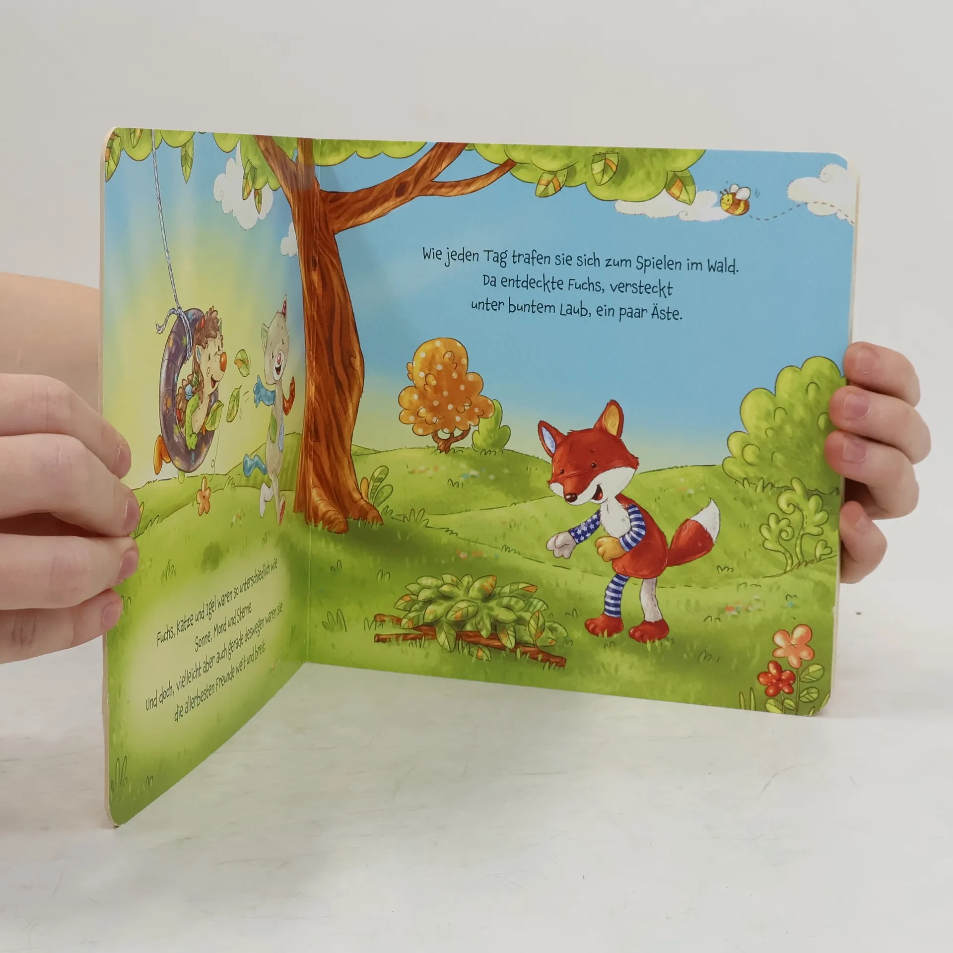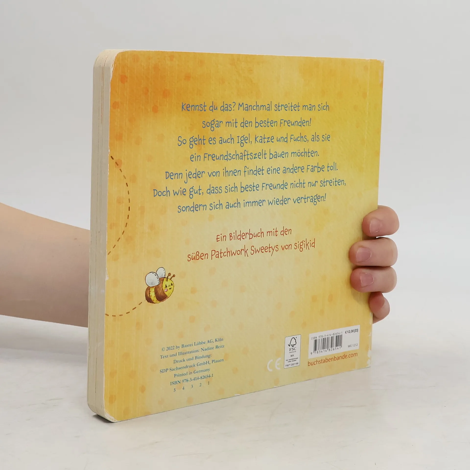 Ein Pappbilderbuch mit den süßen Patchwork Sweetys von sigikid Beste Freunde streiten und vertragen sich wieder! Kennst du das? Manchmal streitet man sich sogar mit den besten Freunden! So geht es auch Igel, Katze und Fuchs, als sie ein Freundschaftszelt bauen möchten. Doch wie gut, dass sich beste Freunde nicht nur streiten - sie vertragen sich auch wieder! Mit knuddelig-liebenswerten Bildern von Nadine Reitz Lesespaß für die Allerkleinsten ab 2 Jahren Große Identifikation: Katze, Igel und Fuchs erleben Abenteuer aus der Lebenswirklichkeit der kleinen Leser:innen und vermitteln wichtige Werte