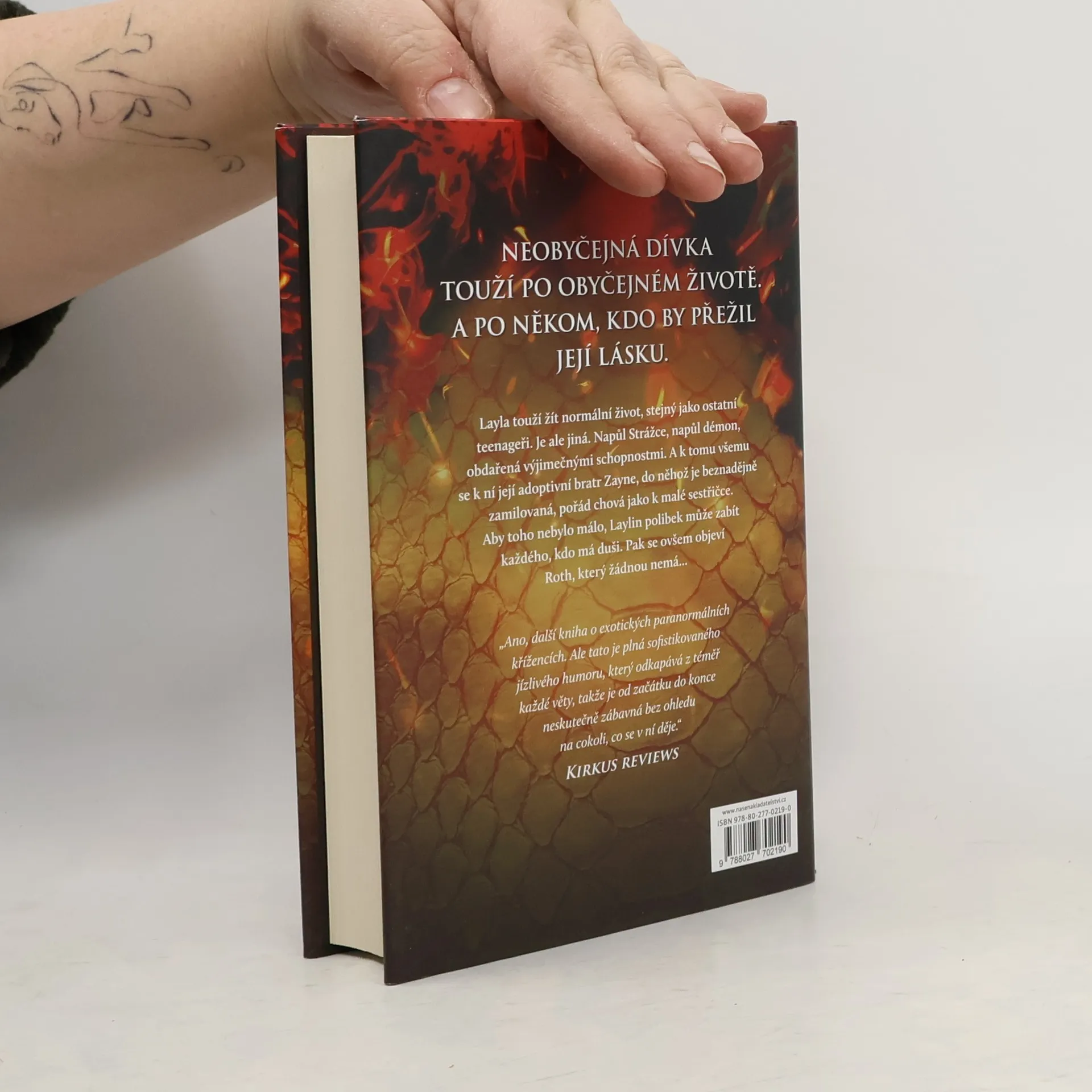 Jediný polibek může zabít Layla touží vést normální život teenagera. Chce trávit čas ve škole s kamarády a chodit na rande. Je ale jiná než ostatní a její celoživotní láska, adoptivní bratr Zayne, s ní jedná jako s malou sestřičkou. Zayne je součástí klanu Strážců, kteří byli shůry pověřeni lovem démonů a obranou lidstva. Layla je napůl Strážce, napůl démon a je obdařena výjimečnými schopnostmi. Její polibek má navíc smrtící účinky na každého, kdo má duši. Na scénu vstupuje Roth, výřečný a sebevědomý démon, který Laylu vyvádí z míry, protože zná její nejhlubší tajemství. Roth je šarmantní, pohledný a sexy. Pro Laylu je proto čím dál obtížnější držet si ho od těla a nevěřit jeho slovům, která do jejího života vnášejí pochyby. Démoni navíc nemají duši… Layla stojí před obtížnou volbou, která se jí může stát osudnou. Starosti s polibkem jdou stranou ve chvíli, kdy se na obzoru začne rýsovat povstání démonů, které může narušit rovnováhu života na Zemi. A Layla ví, že musí udělat vše pro to, aby povstání zabránila, a to i za cenu oběti a zrady vlastní rodiny. První díl série Dark Elements.