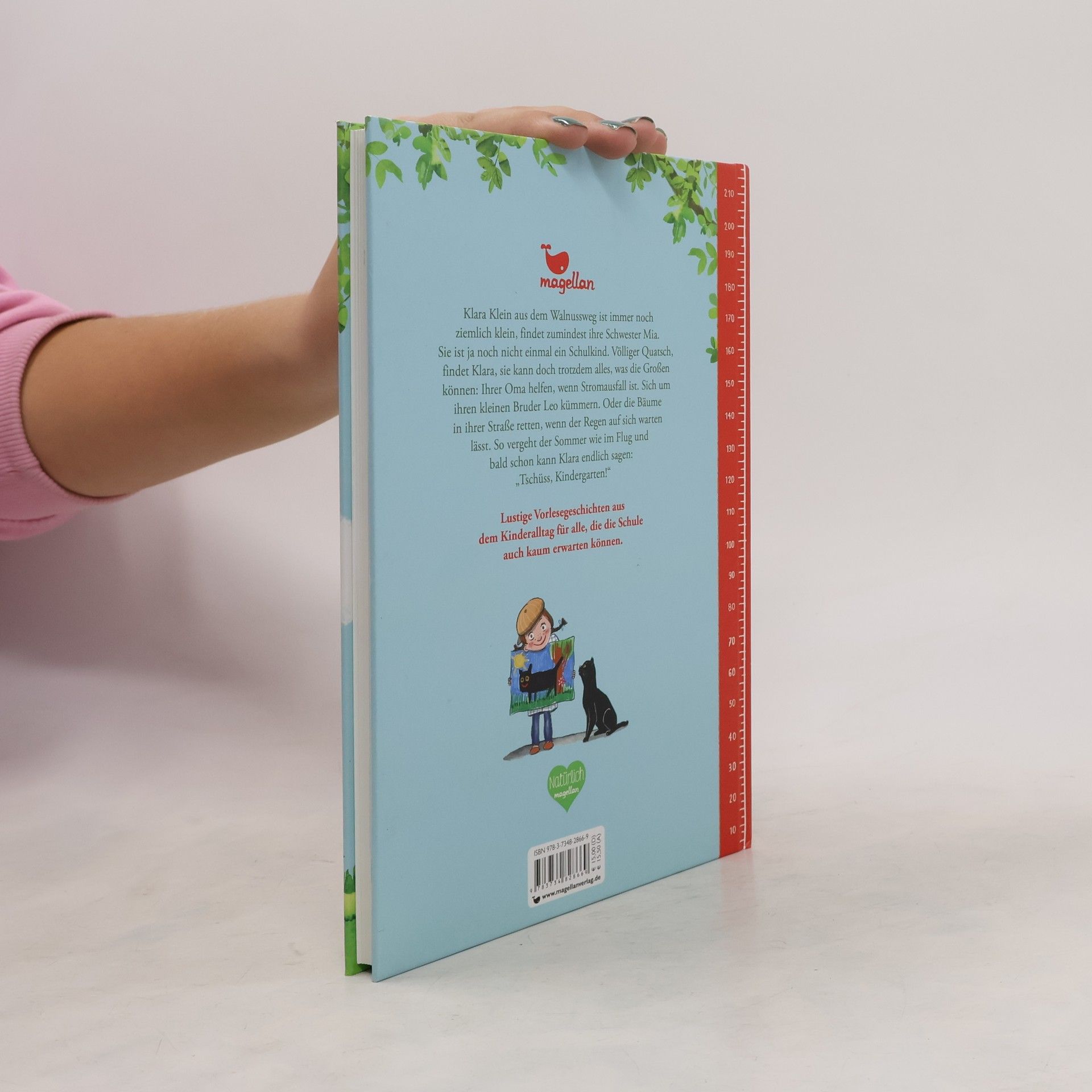 Ein Vorlesebuch über den bunten Kindergartenalltag und die Vorfreude auf den ersten Schultag. Klara Klein aus dem Walnussweg ist immer noch ziemlich klein, findet zumindest ihre Schwester Mia. Völliger Quatsch, findet Klara, sie kann doch trotzdem alles, was die Großen können: Ihrer Oma helfen, wenn Stromausfall ist. Sich um ihren kleinen Bruder Leo kümmern. Oder die Bäume in ihrer Straße retten, wenn der Regen auf sich warten lässt. So vergeht der Sommer wie im Flug und bald schon kann Klara endlich sagen: „Tschüss, Kindergarten!“